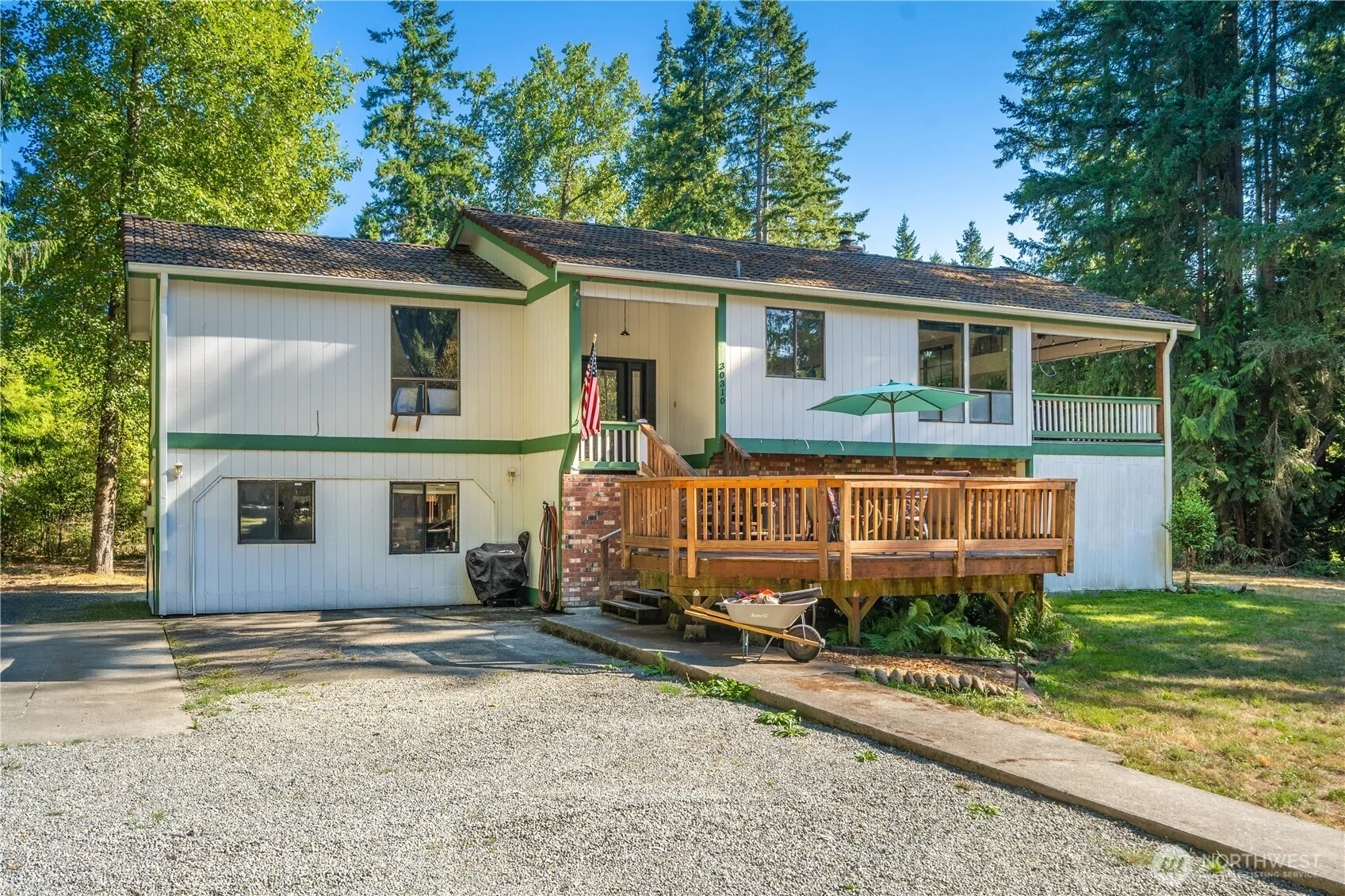 Beautifully maintained split-level on 1.26 acres, consisting of two .63-acre parcels that provide privacy & future potential. Surrounded by mature landscaping, this home offers a bright living room, an updated kitchen, & fresh finishes including new carpet & laminate flooring. The versatile layout features bedrooms and living areas on both levels, ideal for single-family or multi-generational living. Downstairs, enjoy a spacious rec room, oversized bedroom, and bath. A durable 50-yr concrete tile roof ensures peace of mind, while the covered deck invites year-round enjoyment. With community well maintenance at just $120/yr and plenty of space for RV parking, a shop, or gardens, this property combines comfort, functionality, & room to grow.
