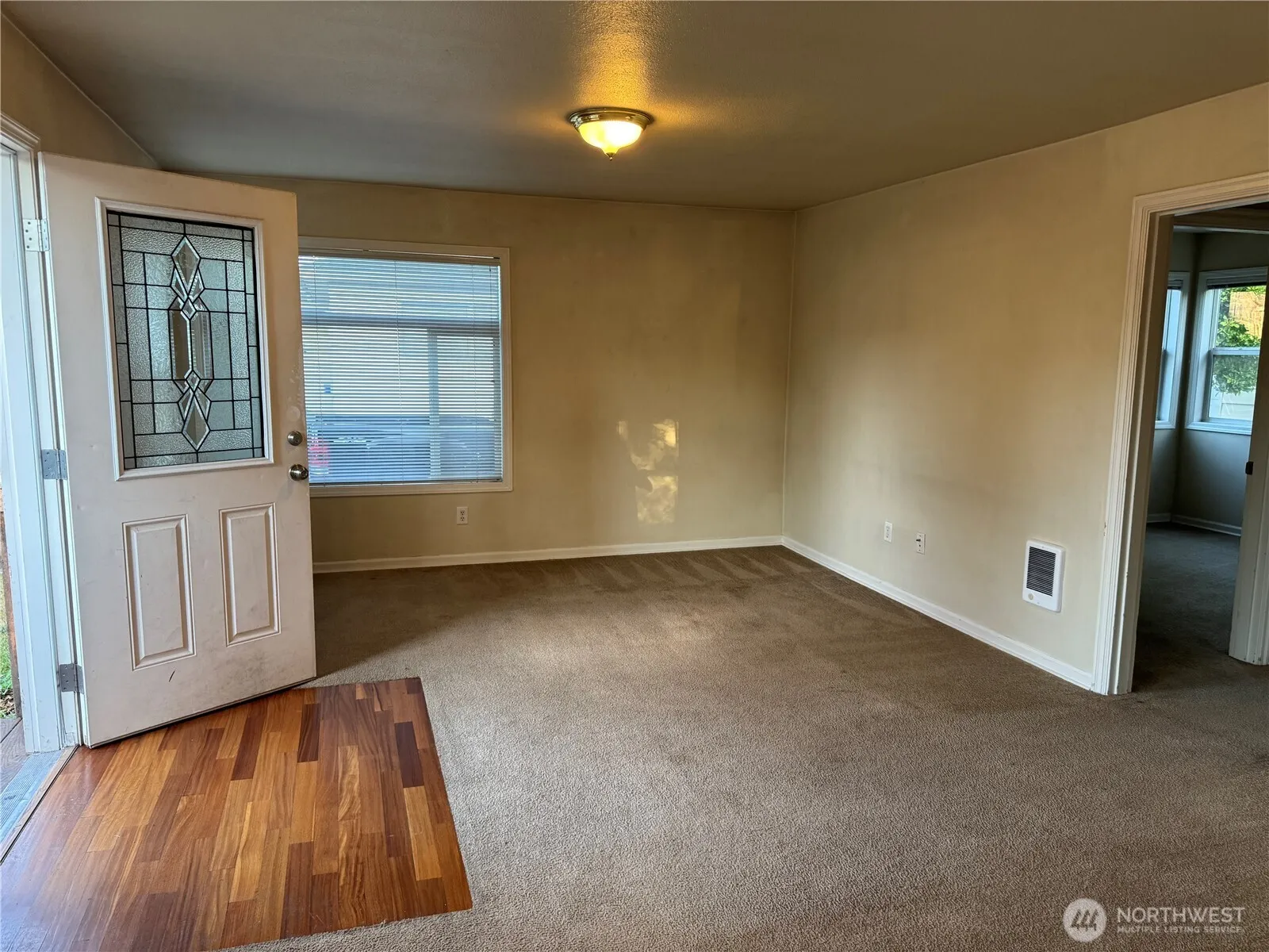 This sweet home is waiting for you! Nice size living room with windows and a corner dining area. 2 bedrooms and one full bathroom. Kitchen with good counter space and smooth top range. Laundry room/mudroom is right around the corner and has a door to the driveway and the garage. Backyard is partially fenced and backyard backs up to the alley. Come and see!