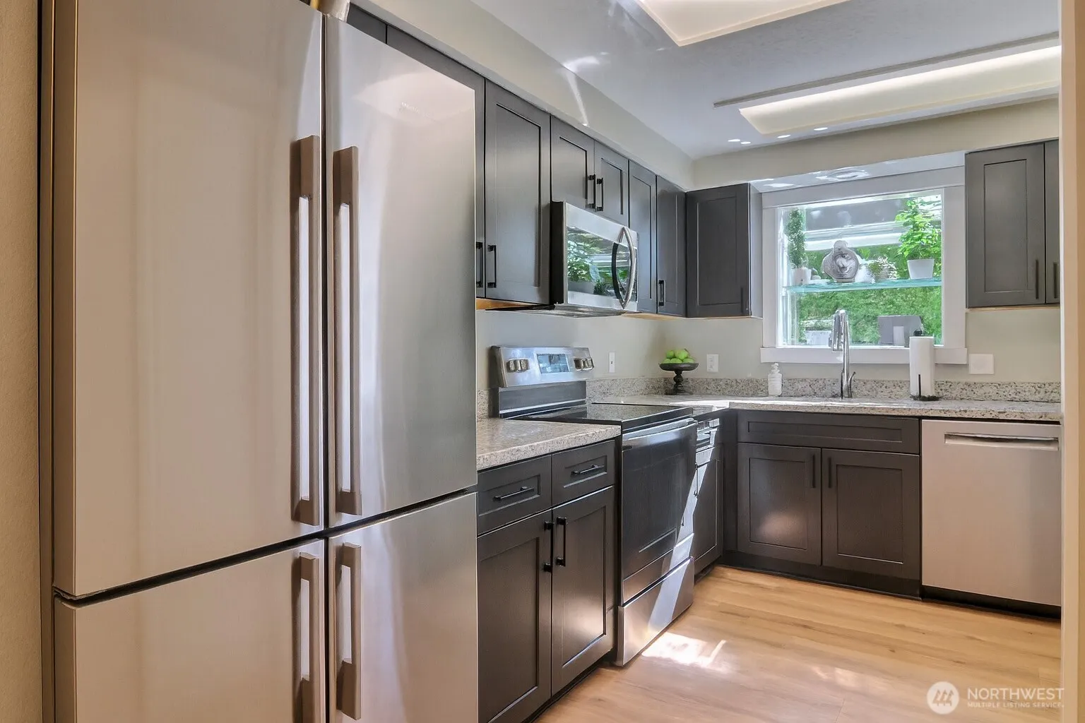 Beautifully renovated single-level living on the first fairway in the peaceful neighborhood of SunLand Hilltop. This move-in-ready home features new engineered hardwoods, updated kitchen with premium countertops, custom cabinets, and new appliances, plus a thoughtfully remodeled bathroom. Skylights and large south-facing windows fill the space with natural light and offer stunning fairway views. Enjoy a brand-new spacious deck and full access to SunLand amenities, including a private beach, pool, golf course, and clubhouse. Perfect as a serene full-time residence or a refined vacation retreat. This is a MUST SEE IN PERSON!