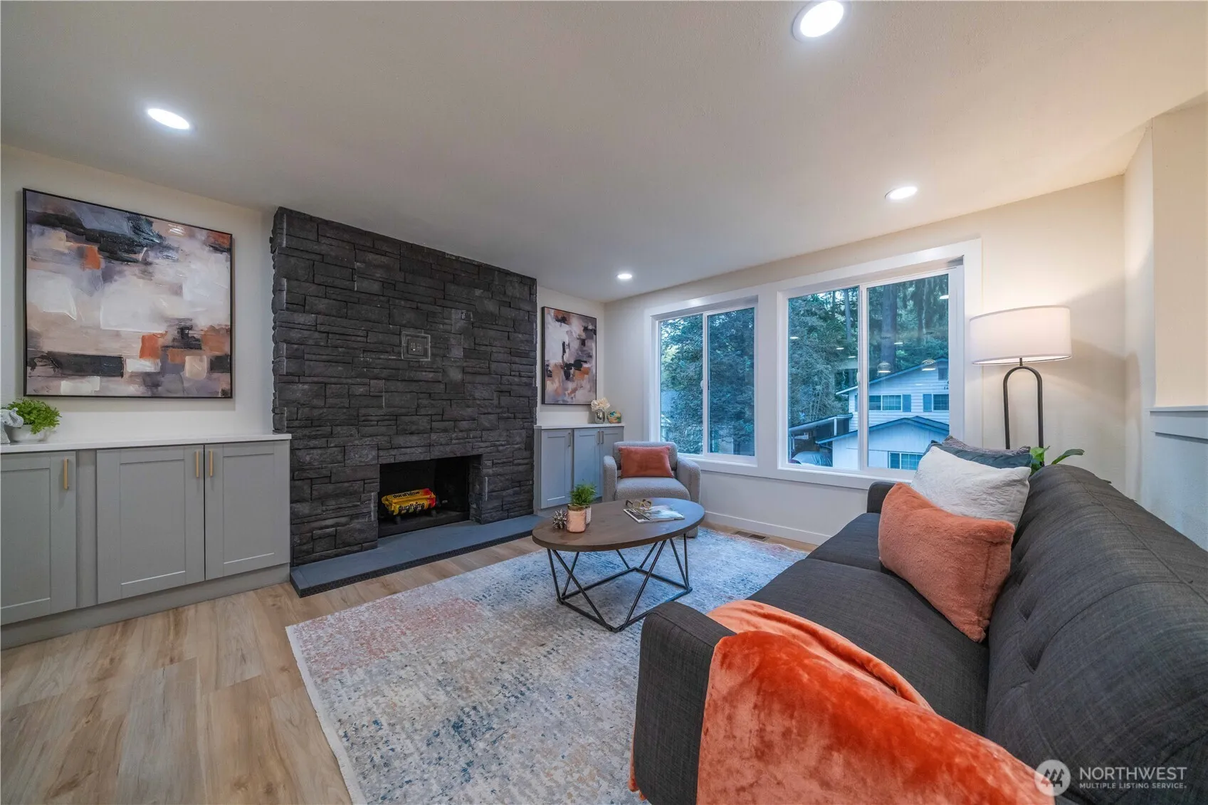 This beautiful home is fresh off extensive contemporary upgrades. Located at the end of its street abutting a greenbelt which provides wooded privacy. Enjoy a clean brand new kitchen inclusive of upper end efficient appliances. Relax under the trees on your new balcony. The home has been updated with Energy Star double paned vinyl windows and sliding glass door. A brand new 98% high efficiency furnace was just installed, paired with a smart thermostat to reduce the utility bills. The large fenced backyard provides many options with possible side RV Parking. Brand new roof, chimney, gutters w/ guards, flooring, fresh interior and exterior paint; too many upgrades to list. It won’t last long, so come see this beauty soon!
