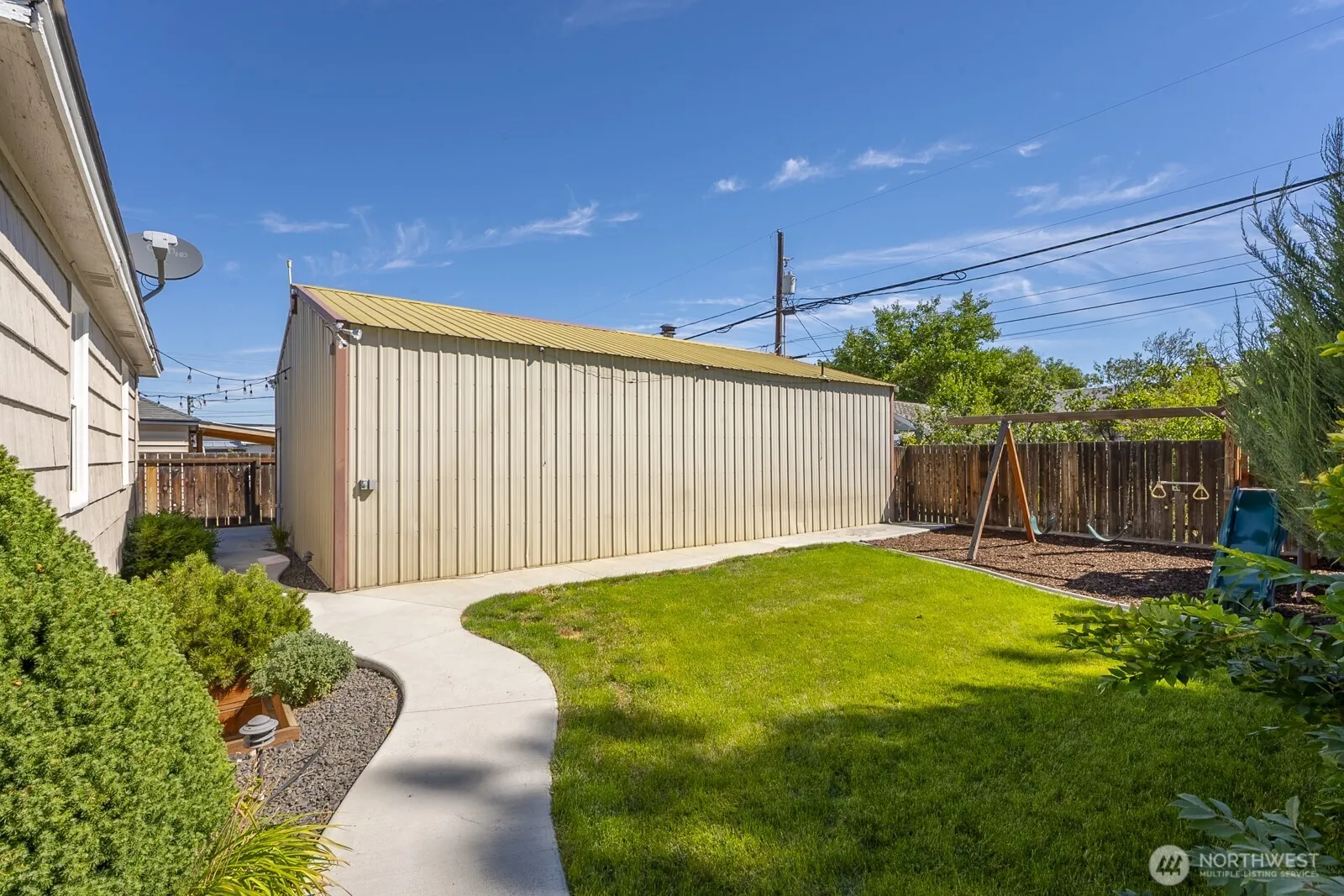 Rare find in this home. Everything has been updated! Great fenced yard, with concrete patio, new sidewalks and curbing, play area and a SHOP that is insulated with concrete heated floors and air conditioning, 3/4 bath, alley access. This home has all new floors, paint, updated kitchen and bathroom, it is so clean and tidy. The basement has a built in bar with hidden tv, such a cool entertainment piece. Huge storage room with sink in the basement and utility room. There is 1 bedroom with egress window and 1 more room that would make a great office or bedroom (install egress to make this a 4 bedroom home). So many features here!