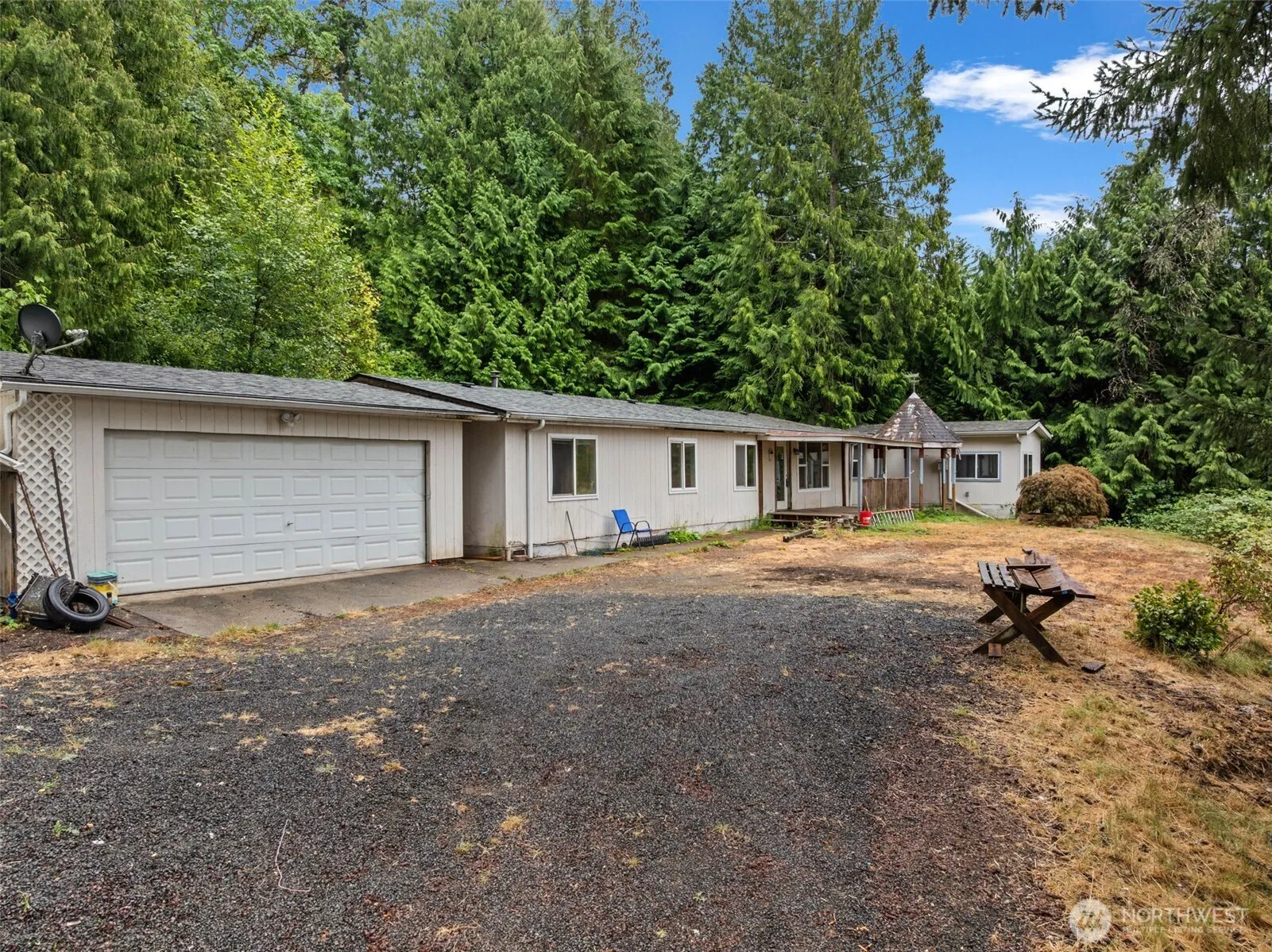 Discover the potential in this spacious 3-bedroom, 2-bath manufactured double wide, nestled on a serene lot in desirable Olalla. The home features recently renovated bathrooms for a fresh start, a detached garage offering extra storage or workshop possibilities, and generous living spaces ready for your personal touch. With a functional layout, this property is a perfect opportunity for buyers looking to build equity through cosmetic updates. Whether you’re a first-time buyer, investor, or DIY enthusiast, this home offers a great canvas in a quiet, country setting.