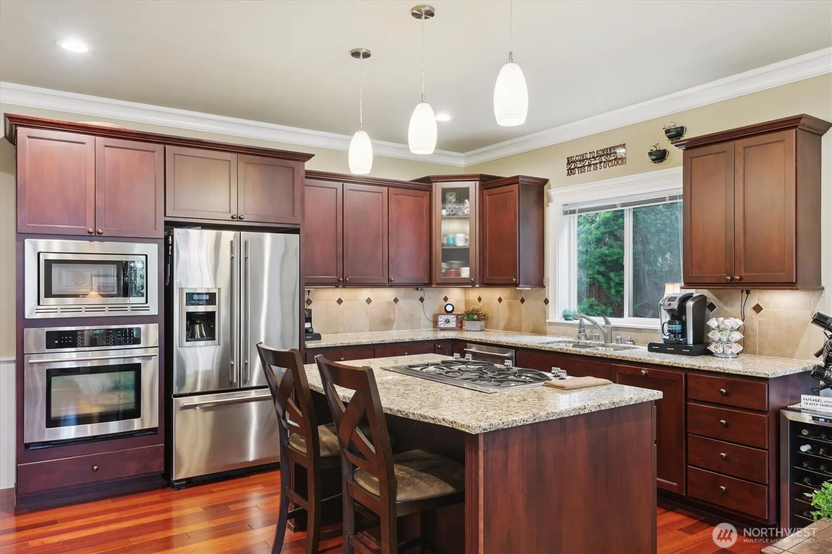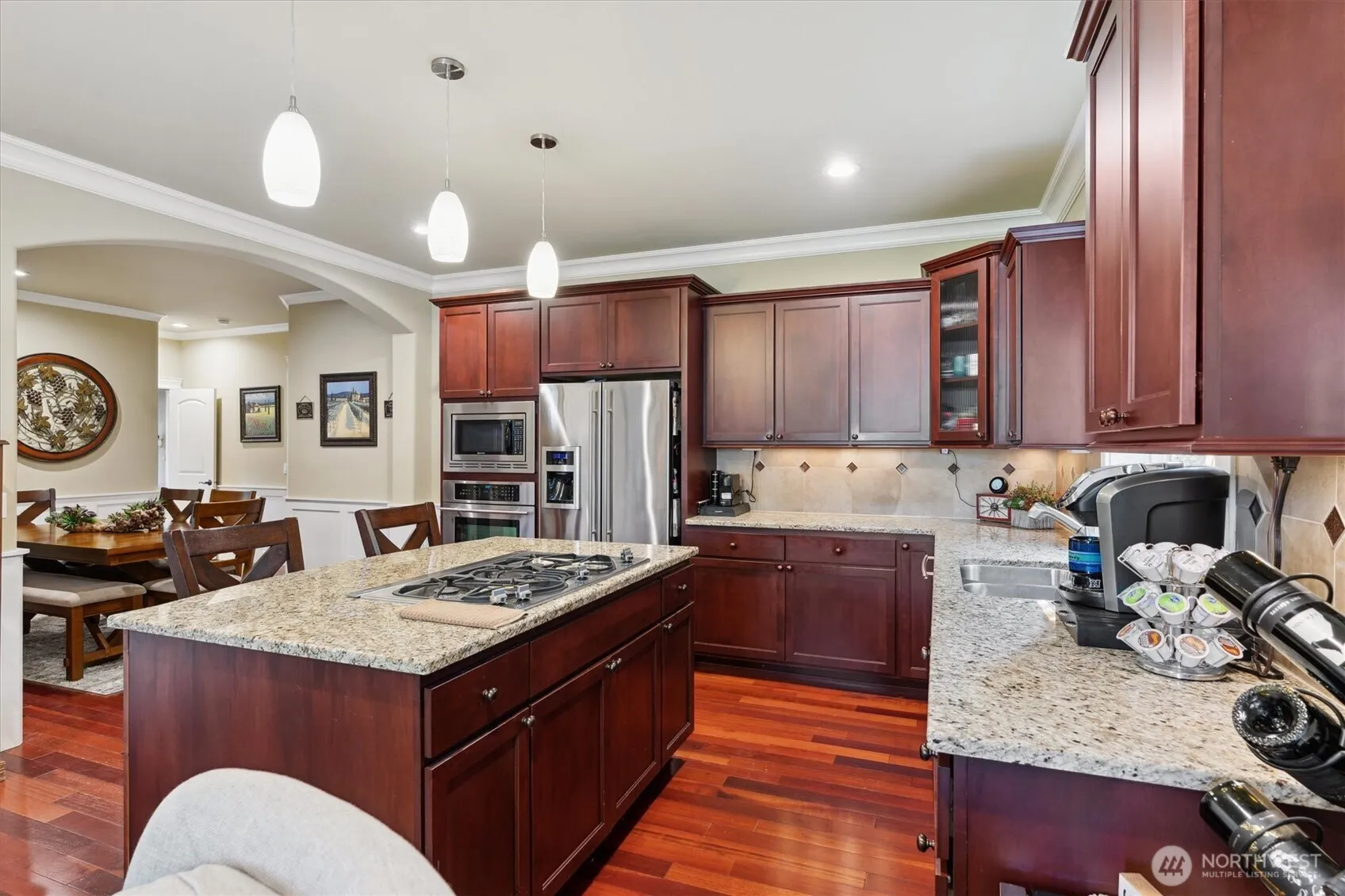 This craftsman home is ready to welcome its new owners into this beautiful 55+ gated community, located in the heart of Covington. The gourmet kitchen is completed w/ rich alder cabinets, high-end Jenn-Air appliances, & luxurious granite slab countertops—perfect for cooking & entertaining. The main floor primary suite offers a peaceful retreat, with its own cozy fireplace, sitting area, & a spacious 5-piece bath. Upstairs, you’ll find 2 generously sized bedrooms with walk-in closets, a versatile loft space, & a large bonus room that easily serve as a 4th bedroom. Crafted with elegant millwork, Brazilian hardwood floors, & central A/C, this home offers comfort and style. Relax in your private courtyard w/ a glass of wine or a morning coffee!