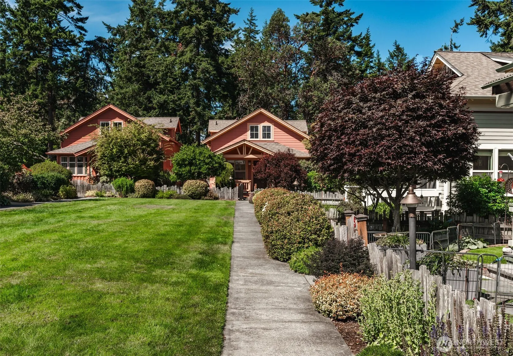This is Umatilla Hill cottages; Beautiful Ross Chapin design and Kimball-Landis quality construction. Cottage number 2 sits in the prime local amongst the 10 cottages, with sunny south facing aspect over looking the exquisite common area and neighbor’s gardens. 2 bed /1.75 bath, bedroom with sitting room/office on the main floor & second bedroom/bath on second floor. This home charms you from the moment you walk in off a sweet front porch. Designed for small house efficiency, with custom built-ins and a cozy propane stove. The fully fenced yard has garden space. The cottages share a courtyard and enjoy access to a common building, garden shed/tool shed, and individual storage units. Just minutes from Uptown, downtown and public trails.