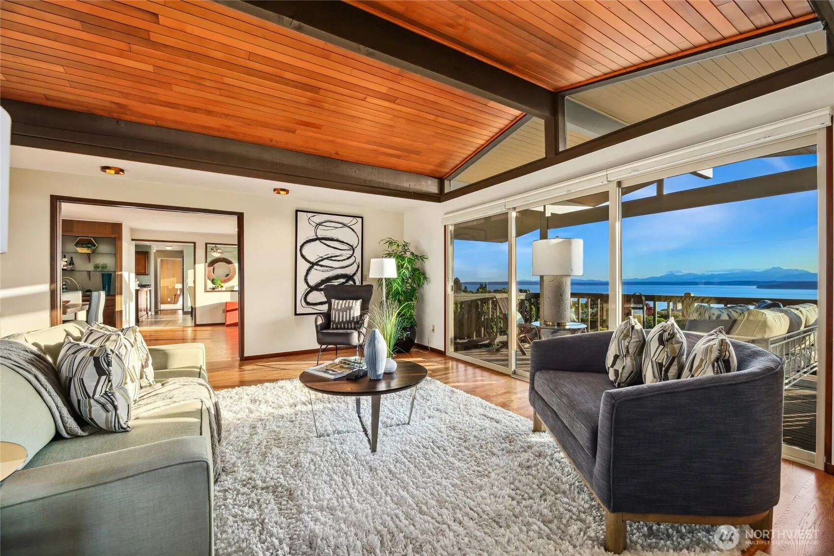Breathtaking views of Puget Sound and the majestic Olympic Mountains greet you from this beautiful home, gracefully set on a coveted street and framed by manicured gardens. Inside, refined yet welcoming living spaces are perfectly suited for both grand entertaining and quiet evenings, with multiple decks inviting seamless indoor-outdoor living. The newly remodeled lower level, with private entrance, offers flexibility: a luxe guest suite, space for multi-generational living, a home gym, or the ultimate hangout retreat. A four-bay detached garage adds valuable space for vehicles and hobbies. Just a stone’s throw from the Innis Arden community pool, tennis courts, and playfield, this is a home where lasting memories are made.