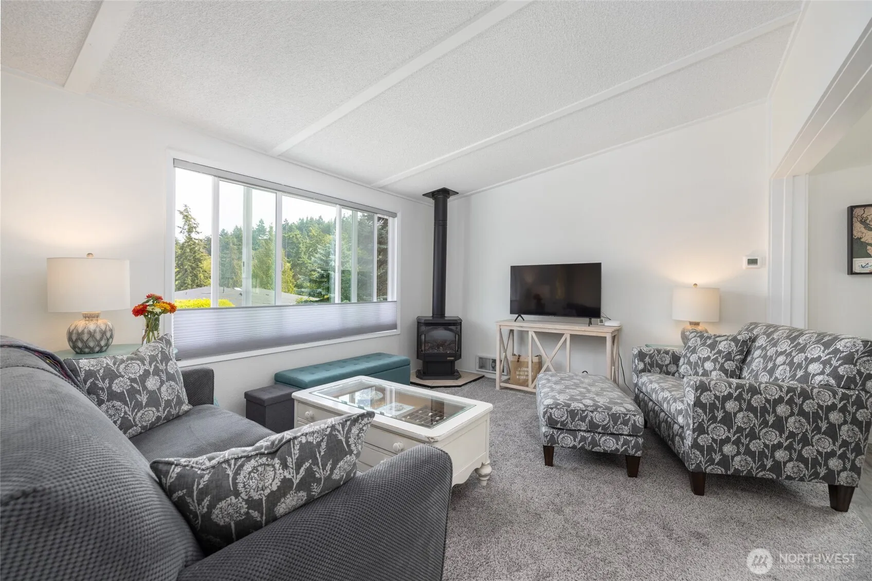 Say hello to this Shelter Bay gem! Wrapped in sunshine, this cozy and crisp modular home is located on an east-facing lot w/peek-a-views of the Rainbow Bridge and Mount Baker. Featuring 3 bedrooms, 1 3/4 baths, a cheerful kitchen with a garden window, adjacent dining room, a relaxing living room w/propane fireplace, the flexibility to host a seasonal gathering with friends on the front deck. A detached 1-car garage with 2 bonus rooms will enchant an artist, hobbyist, gardener. Centrally located within the exquisite Shelter Bay & walkable to the community pool, golf course, club house, marina. This home will make you feel like you are away from it all, but is minutes from the history-rich and revered town of La Conner.