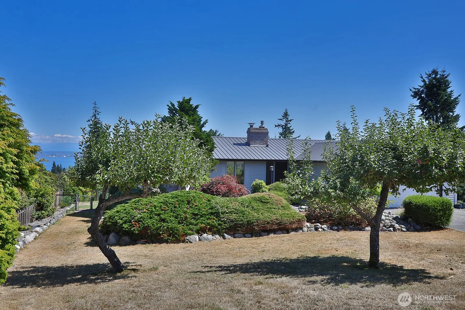 Awake to spectacular colorful sunrises, soaring eagles & views of Puget Sound, Ferries, and the Cascades. Enjoy your morning coffee sitting on the side deck. End the day with your favorite beverage, relaxing to the sunset-lit waters & twinkling city lights of Everett in the evenings. Enjoy vaulted ceilings & oversized windows showing off the view & wildlife. The kitchen has been updated with modern features, such as quartz countertops, soft-close drawers & induction cooktop. The main floor primary has built-in cabinets flanked with closets on each side, and the bathroom has been updated. The lower-level family room has a wood-burning stove, a large utility room with studio/hobby space. The home sits on a little over an acre with trails.