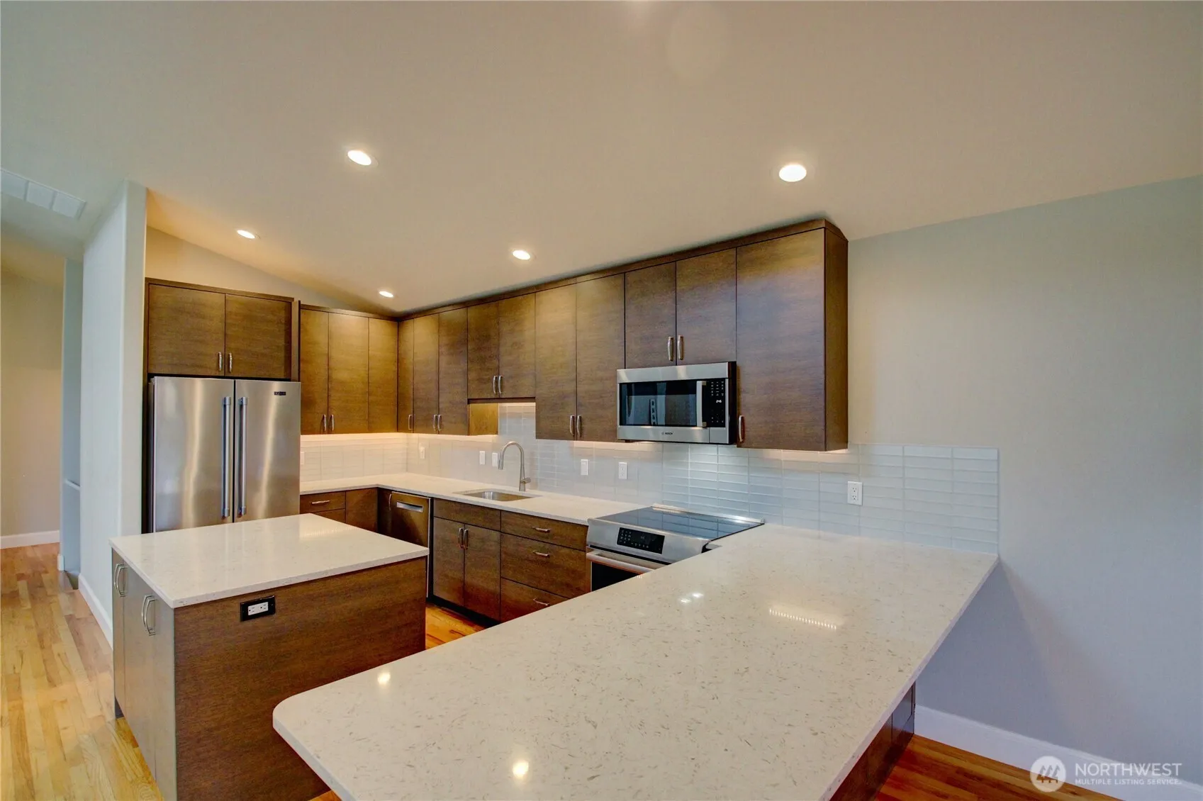 Price Reduced!!! PLUS seller will pay first year of HOA fees!!! This gorgeous condo has been stunningly updated and well-maintained. The sleek design of the kitchen makes cooking and entertaining a delight. Featuring custom cabinets, quartz counters, beautiful tile work, stainless steel appliances, glass cooktop. With an open concept, the main living area offers a gas fireplace and vaulted ceilings. The spacious owners suite w/dressing area and 5 piece bath – jetted tub and walk in shower. The guest room comes with a Murphy Bed. The lower lever family room w/gas fireplace, wet bar, bedroom and full bath. There is a deck and patio overlooking the wooded surroundings – beautiful easterly views. Professionally cleaned