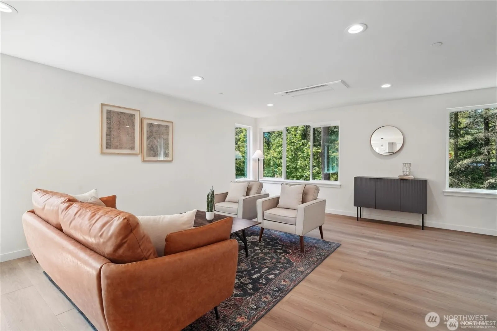Last 4 bedroom! New construction tucked away on quiet street in transit friendly Shoreline. Spacious 4 bedroom homes w/superior finishes, intelligent design, and welcoming spaces. Modern chef’s kitchen w/shaker cabinets, quartz countertops & stainless appliances. Adjacent family and dining room are spacious w/plenty of natural light. Top floor primary suite w/vaulted ceilings & pleasant outlook. 5-piece primary bath & walk-in custom closet. Scenic tree-lined westerly buffer. 2 car garage is EV ready. No HOA dues. Quick access to I-5. 5 minutes to 2 light rail stations, both with parking. Starbucks, Thriftway and Costco nearby. Easy walk to multiple restaurants, groceries or the gym. Ample street parking for guests. 4-Star Built Green.