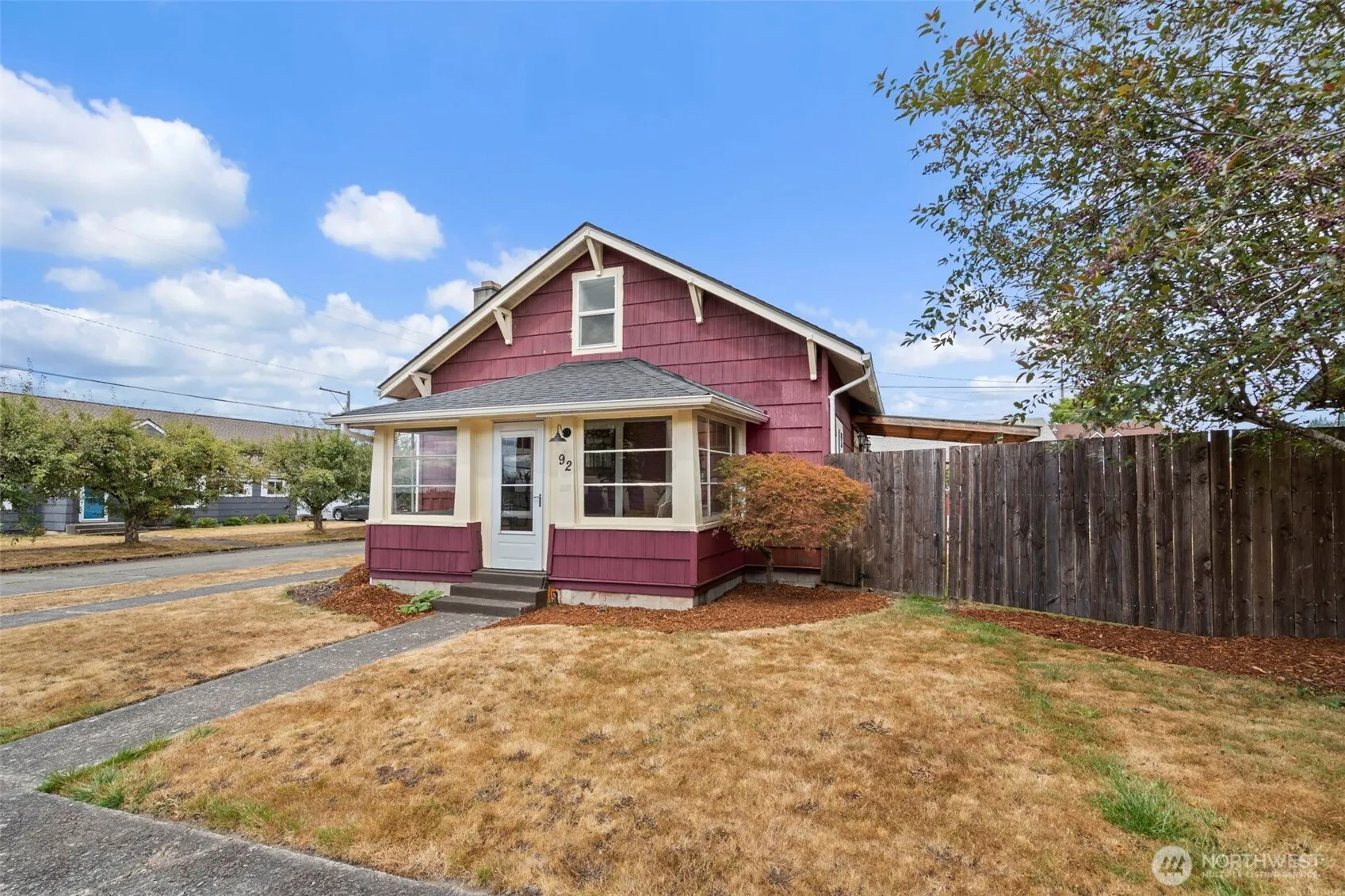 Charming 1.5-Story Home on Spacious Corner Lot! This delightful home has classic character and some modern updates. Enjoy relaxing in the sunny enclosed porch or entertaining on the covered deck or patio overlooking a fully fenced yard. Inside, the updated kitchen features stylish shaker cabinets and granite countertops with gas range, while the refreshed bathroom includes a new tub/shower, toilet, and sink. The living area boasts a brick gas fireplace and built in window nook. New primary suite with 3/4 bath, a newer roof, a gas furnace, water heater, ductless heat pump this home offers efficiency and charm. Great curb appeal, 2 car garage, and it’s move-in ready and cute as can be! In a quiet neighborhood close to I-5.