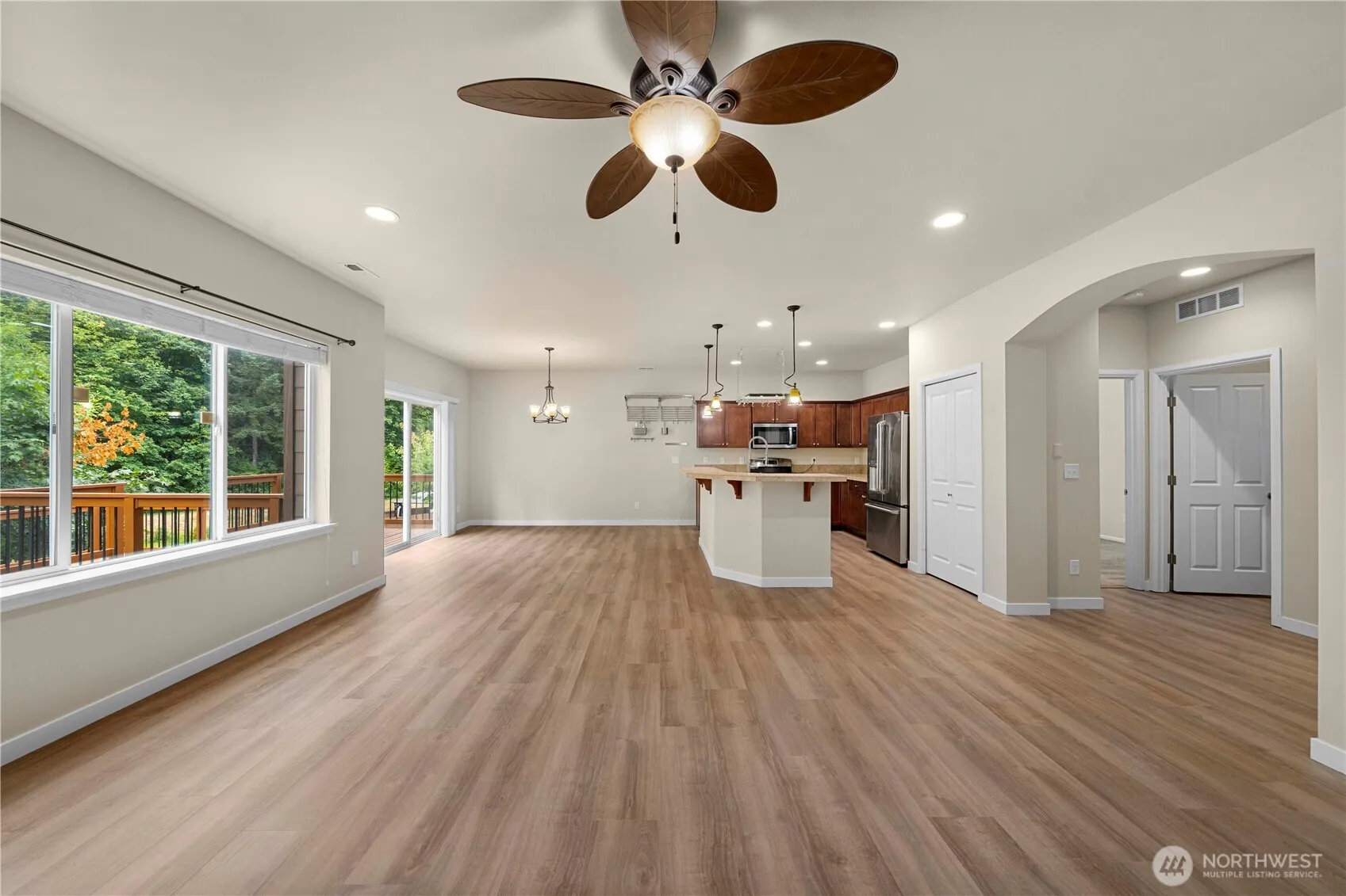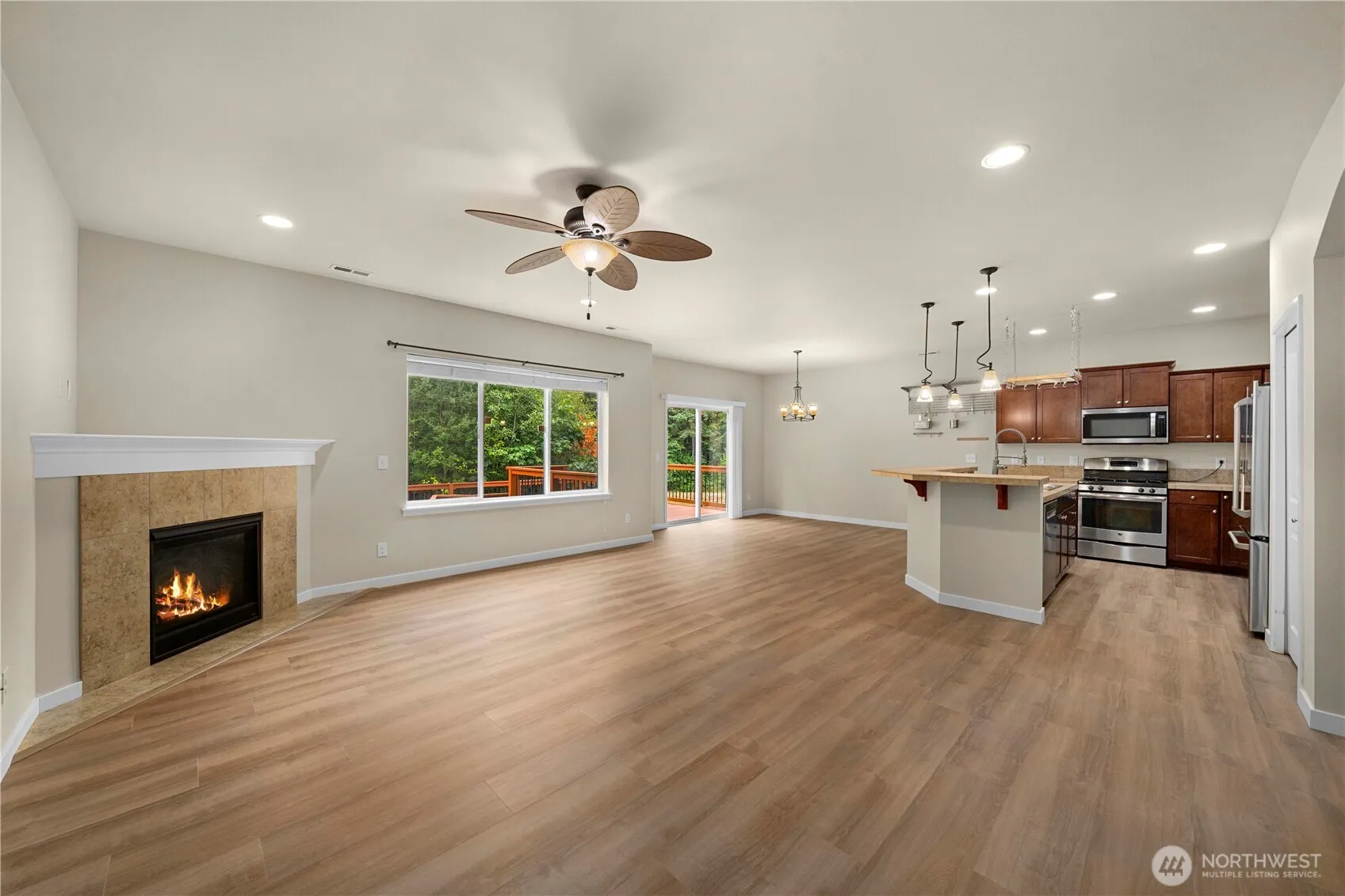 New LVP floors, fresh paint & professionally cleaned makes this move-in ready home a must see! Nestled in peaceful Trosper Ridge, this Tumwater neighborhood home offers 2,712 sqft of modern living. Featuring 4 bedrooms, 2.5 baths, office & upstairs family room. Step inside to a light-filled open concept featuring a gourmet kitchen with an oversized tiled chef’s island, stainless steel appliances, and a cozy gas fireplace defining the generous living area. The luxurious primary suite boasts a 5-piece bath and large walk-in closet. Step outside to your private backyard oasis with a custom deck, courtyard, and serene views backing to wooded open space! Just minutes from I-5 and JBLM, this home checks every box + 1 year home warranty!