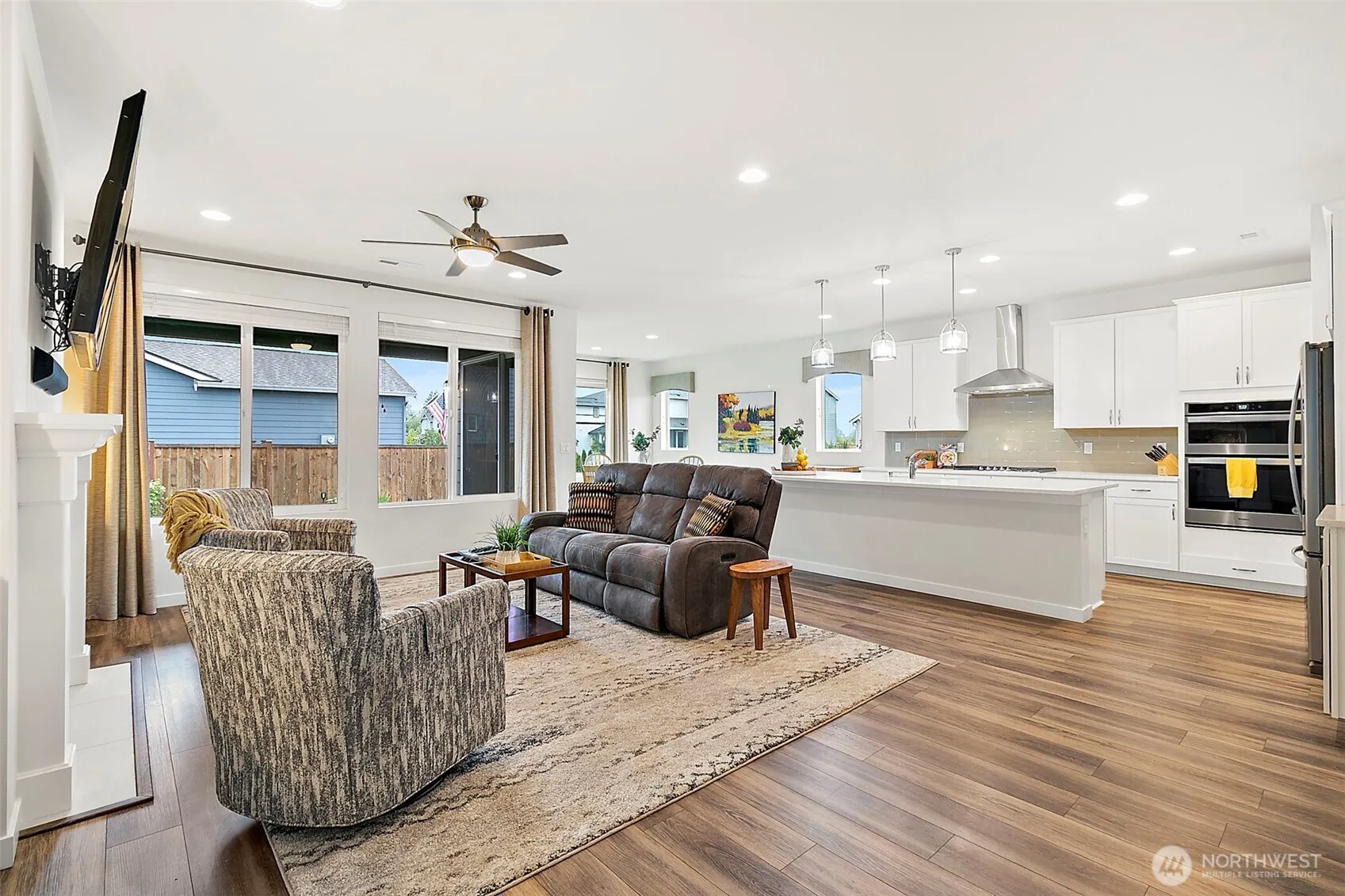 Welcome to this like-new rambler in sought-after Pinnacle Peak. Immaculate 3 bed/3 bath rambler built in 2019 on corner lot. This spacious 2,180 sq ft home sits on a generous 9,166 sq ft lot and features view of Mt. Rainier. Open-concept great room flows seamlessly into the kitchen, featuring large island with quartz counter tops, stainless steel appl (all included) and large walk-in pantry. Primary suite offers walk-in closet, linen closet, and a spacious bath with large walk-in shower. Tandem 3 car garage provides extra storage space for parking or workshop. Enjoy a beautifully landscaped backyard with built-in sprinkler system, patio and shed. This home is move-in ready-You don’t want to miss this one!