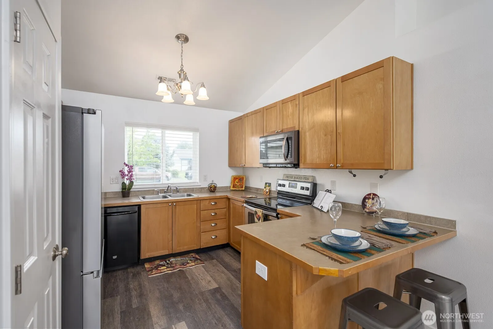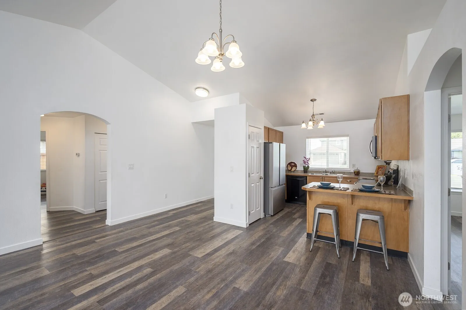 Welcome to your new beginning. Charming 1-level 1502 Sq.ft. 4 bds 1.75 bths Rambler with no HOA’s. Move-in ready. This home features vaulted ceilings, a light-filled, open floor plan and newer vinyl plank flooring throughout. The kitchen boasts lovely cabinetry with breakfast bar and a pantry. The primary bedroom has a private en-suite bathroom with double vanity sinks. The 4th bdrm is non conforming and can also be used as a office. This home has a heat pump that ensures year-round comfort w/energy savings, and cool summers. Spacious 2 car garage with seamless no-step access into the home. Enjoy entertaining in a fully fence backyard with patio. Easy access to local restaurants and nearby shopping. This is a great place to call home.