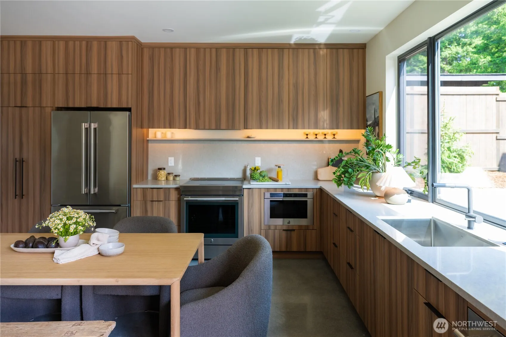 Discover exceptional new construction in Bainbridge Island’s Wing Point neighborhood. This thoughtfully designed home by Layline Design + Build combines energy-efficient, net-zero-capable features with modern luxury. The spacious, insulated 2-car garage includes an EV charging station for convenience and sustainability. Inside, enjoy an open floor plan with abundant natural light, a sleek European-style kitchen, and seamless flow to a private courtyard—perfect for relaxation or entertaining. The beautifully landscaped yard features a cozy firepit area, creating an inviting outdoor retreat. With low HOA dues and smart, efficient design, this home offers a rare blend of comfort, style, and long-term value.