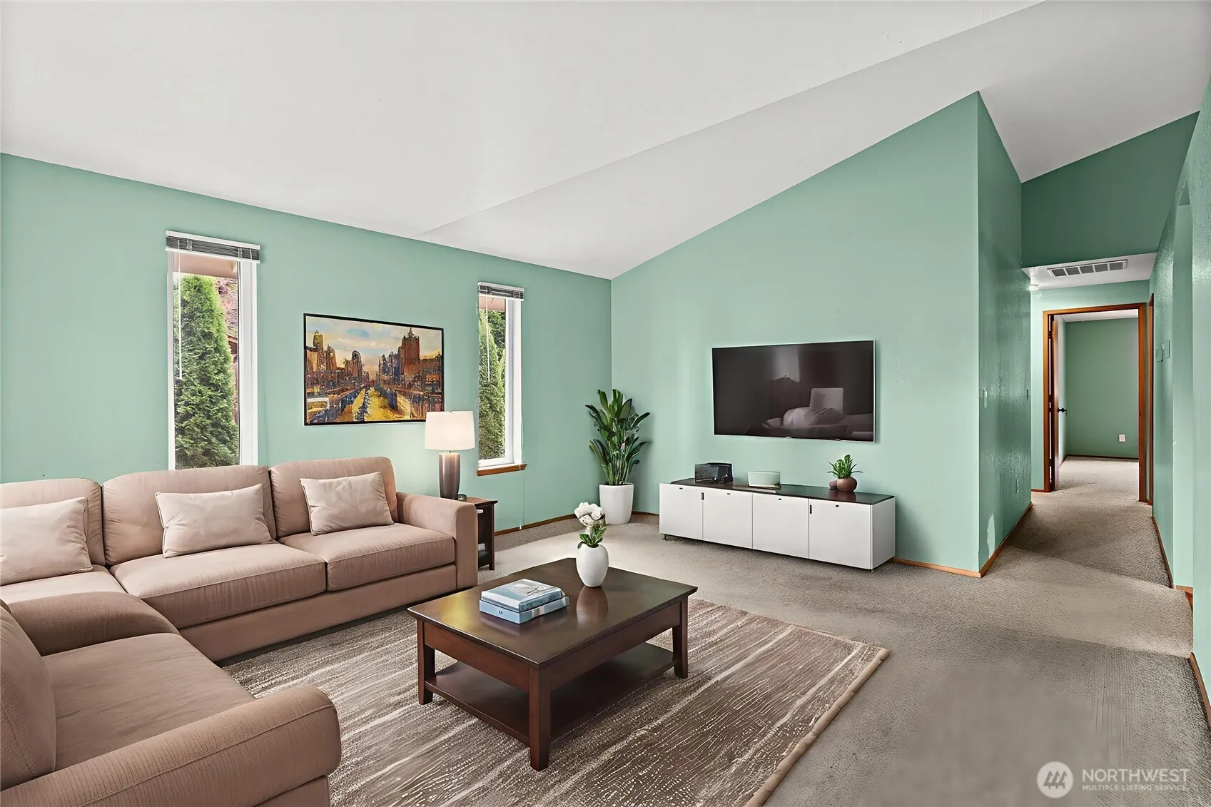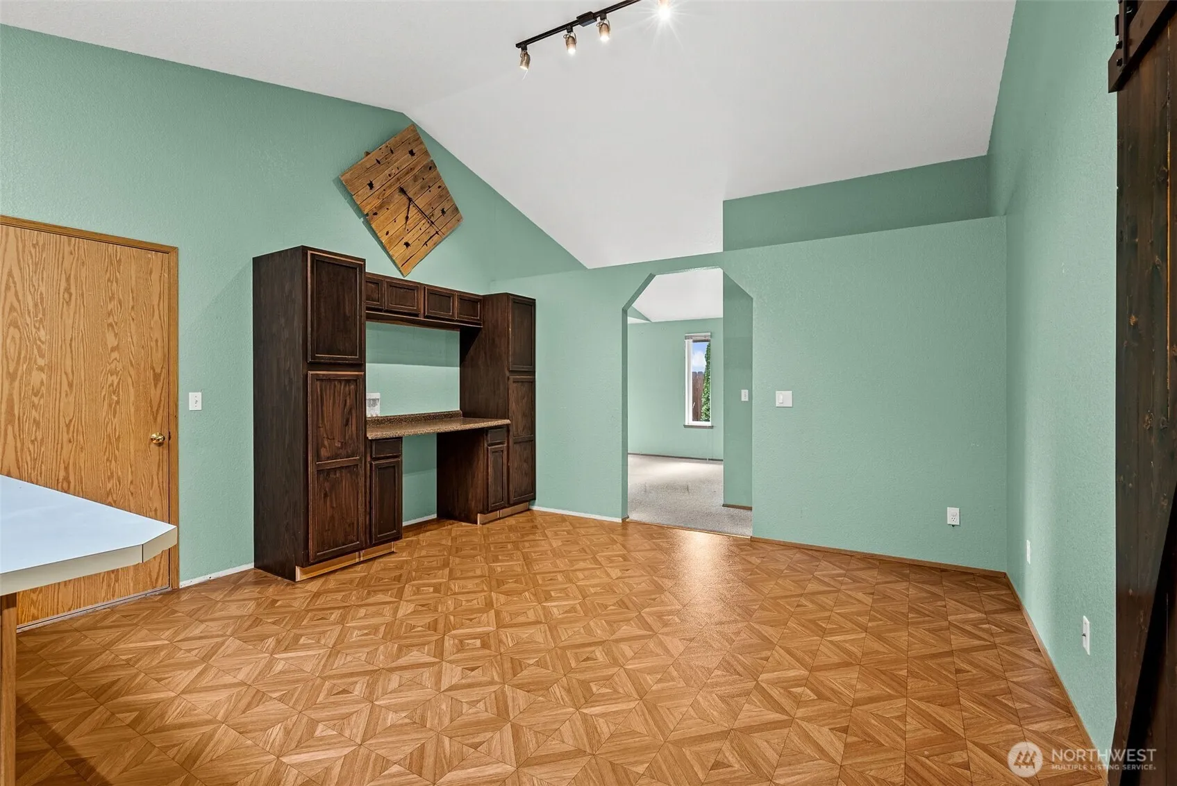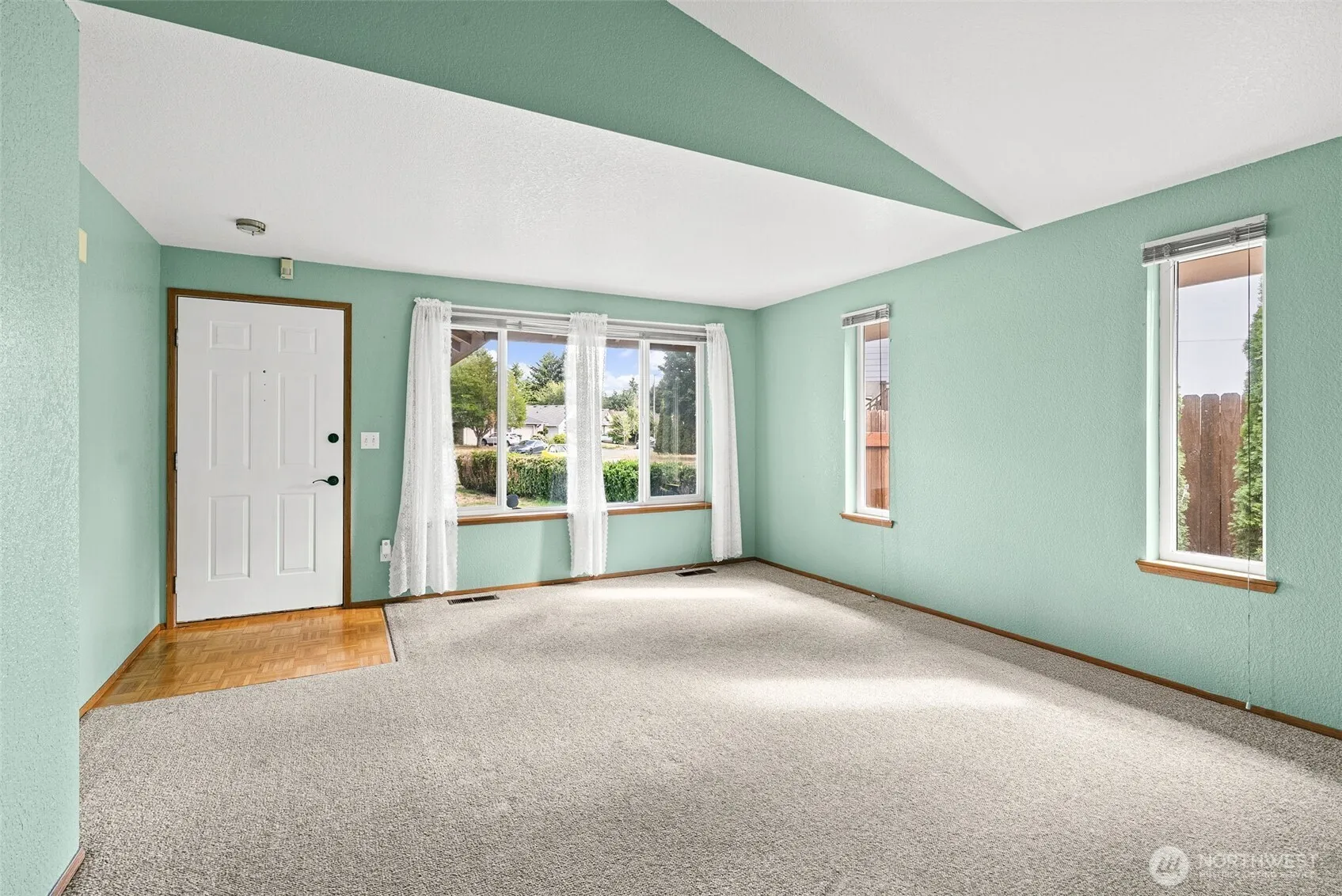 This inviting 3-bed, 2-bath single-story home features an open-concept layout with 2 distinct living areas that seamlessly connect to the kitchen, making it perfect for gatherings. Enjoy soaring ceilings in the living room and a cozy wood fireplace in the family room, which also opens to the fenced backyard—ideal for entertaining. Enjoy your coffee on the covered front porch. Inside, vaulted ceilings enhance the bright, airy feel throughout. The kitchen includes an eating bar w/plenty of storage. Stay cool with the A/C. The primary suite consists of a ¾ en-suite bath and walk-in closet. A 2-car garage & a 10×14 shed offer plenty of storage. Ideally located near shopping, parks, golf courses, & dining, with easy access to I-5 and JBLM!