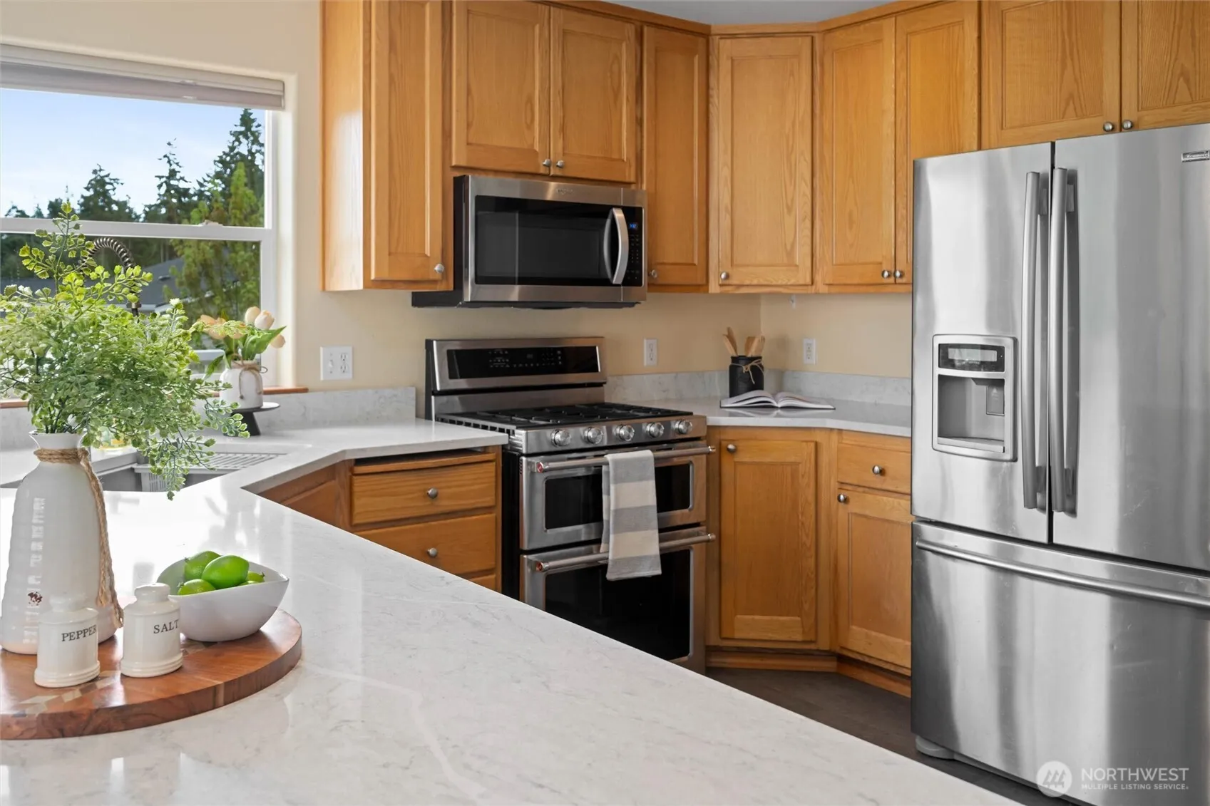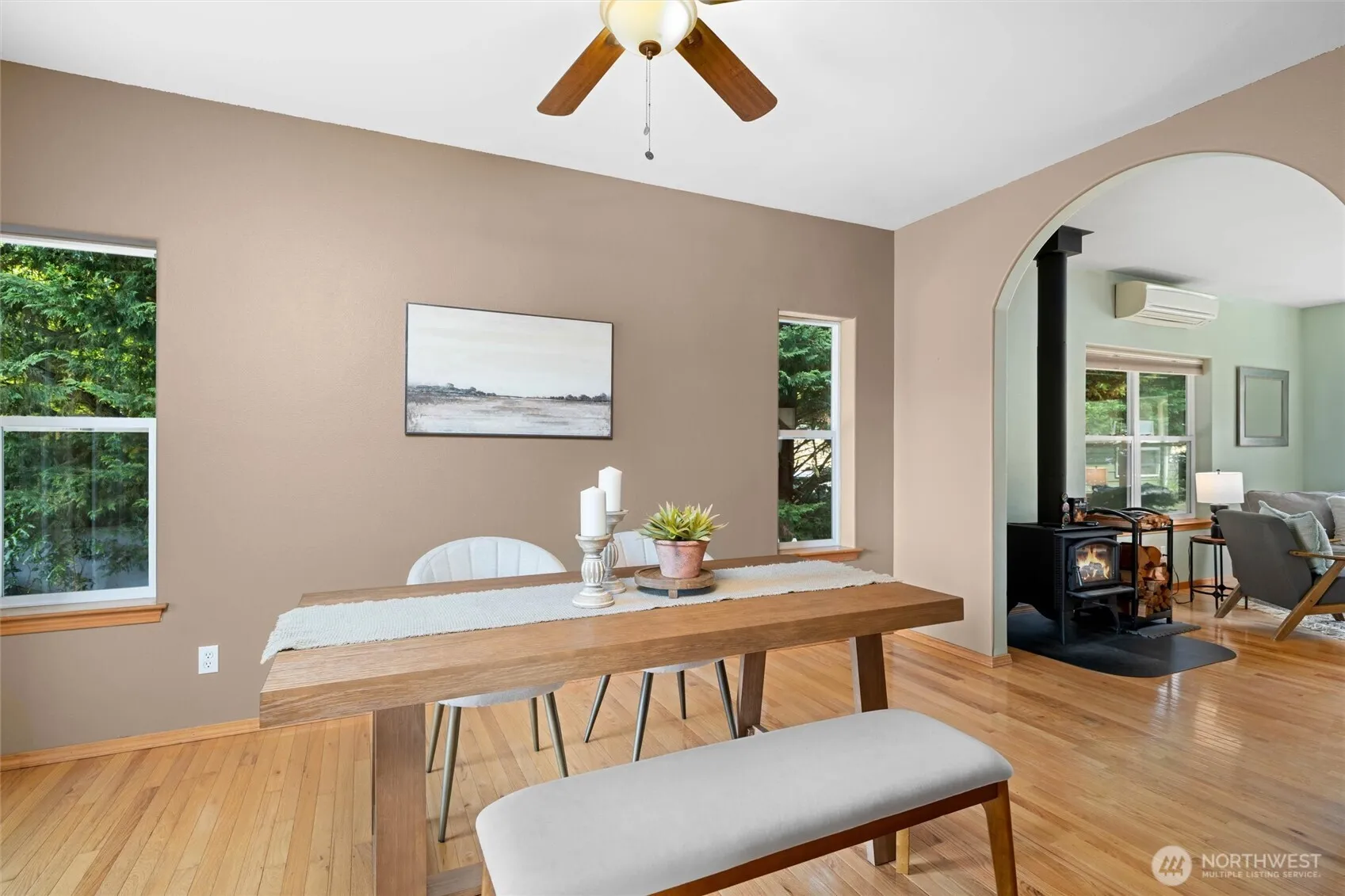 This Whidbey Island home blends peaceful charm with a flexible layout & thoughtful updates throughout. The main floor includes 1 bedroom & 1/2 bath, while upstairs offers 3 more bedrooms, including a spacious primary suite with walk-in closet, en suite bath, & peekaboo views of Mt. Baker. A cozy wood-burning stove, mini-splits, & a full-house furnace provide year-round comfort. The updated kitchen offers modern style & function. Enjoy the fully fenced backyard with a spacious deck & 2-car garage. Located near the shores of Penn Cove, you’re minutes from scenic parks, beach access, & the charm of a historic seaside town with a nearby bus stop & convenient shuttle access to SeaTac making travel a breeze. All systems go, just move in & enjoy!