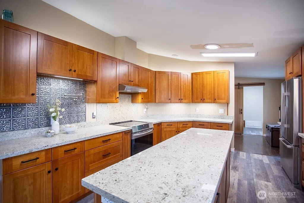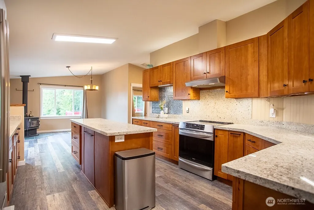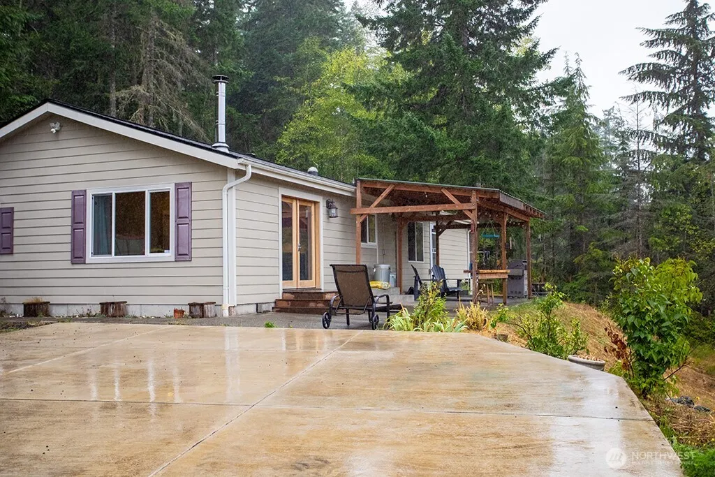 Private Country Living Just 20 Minutes from Silverdale! Welcome to this 1512 sqft home includes 3-bed,including primary,2-bath 2003 manufactured home on a fully fenced 4.67-acre property. Original owner, 3 yr old roof, beautiful updated kitchen, quartz countertops, pot filler, newer cabinets with numerous drawers, pantry. Enjoy the cozy wood stove, efficient mini-split heating and A/C, and a generous covered patio. A 1160 sqft detached garage/shop with 2 bonus rooms, half bath, and lower-level storage. A large open bay barn & loft, additional 2 stall stable,2 outbuildings and fruit trees A 2-stall stable. This is the ideal setting for anyone seeking space, functionality, and privacy without sacrificing convenience.