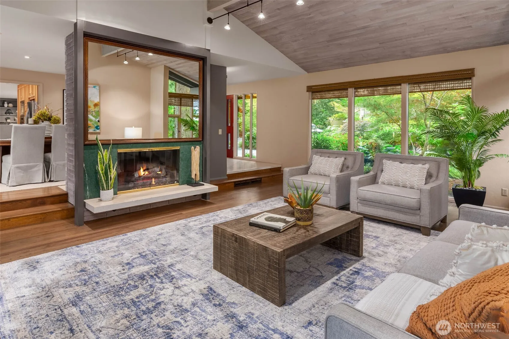 Blending classic Northwest design w/generous living spaces, this home invites both connection & comfort. Set on a beautifully landscaped corner lot, the upper-level features 5BR’s/2.5BA’s providing ample room for all. The main floor is thoughtfully designed for everyday living & entertaining w/welcoming living & dining rms sharing a double-sided fireplace, comfortable family rm off kitchen, powder rm & home office w/sep outdoor entrance. Vaulted cedar ceilings add warmth & character, while sliding doors open to a fully fenced backyard w/expansive patio—perfect for BBQs. A/C, new roof & generator hook-up. Blocks from Lakeridge Elem & IMS, trails & south-end shopping, this is a home where gatherings flow easily & every season feels like home.