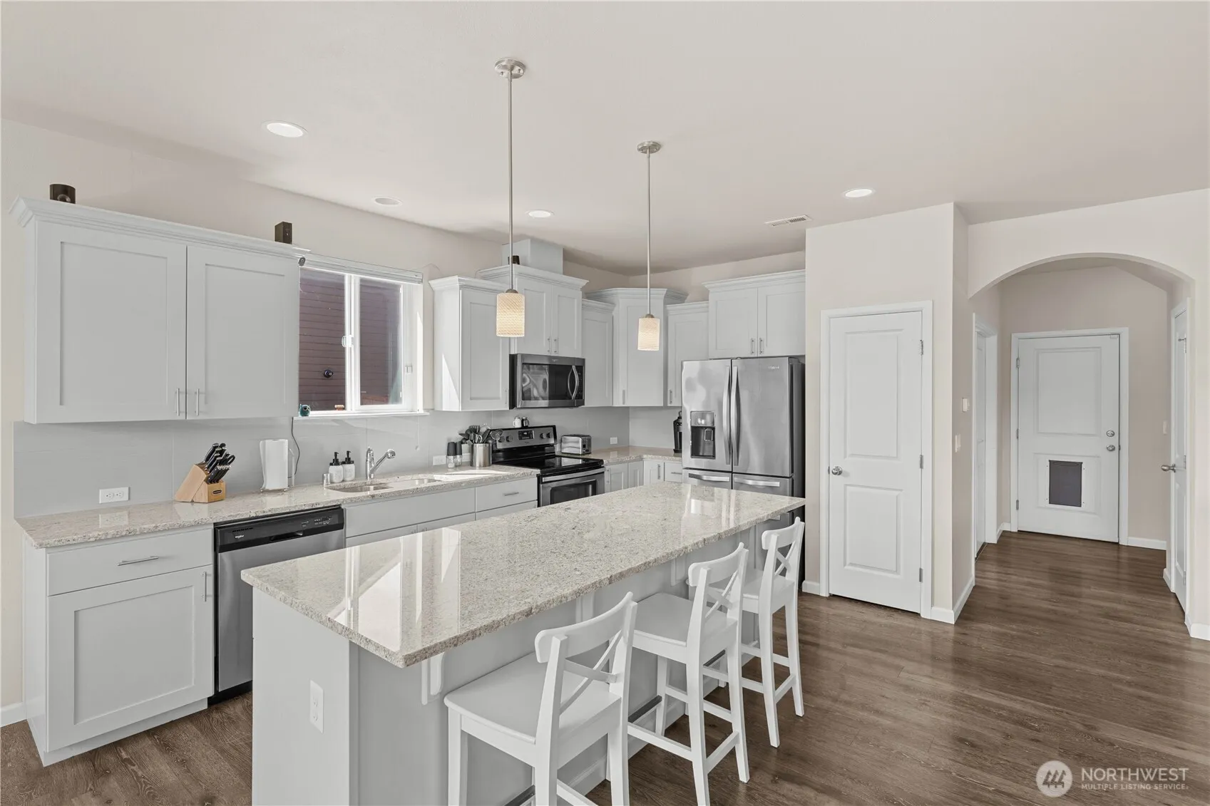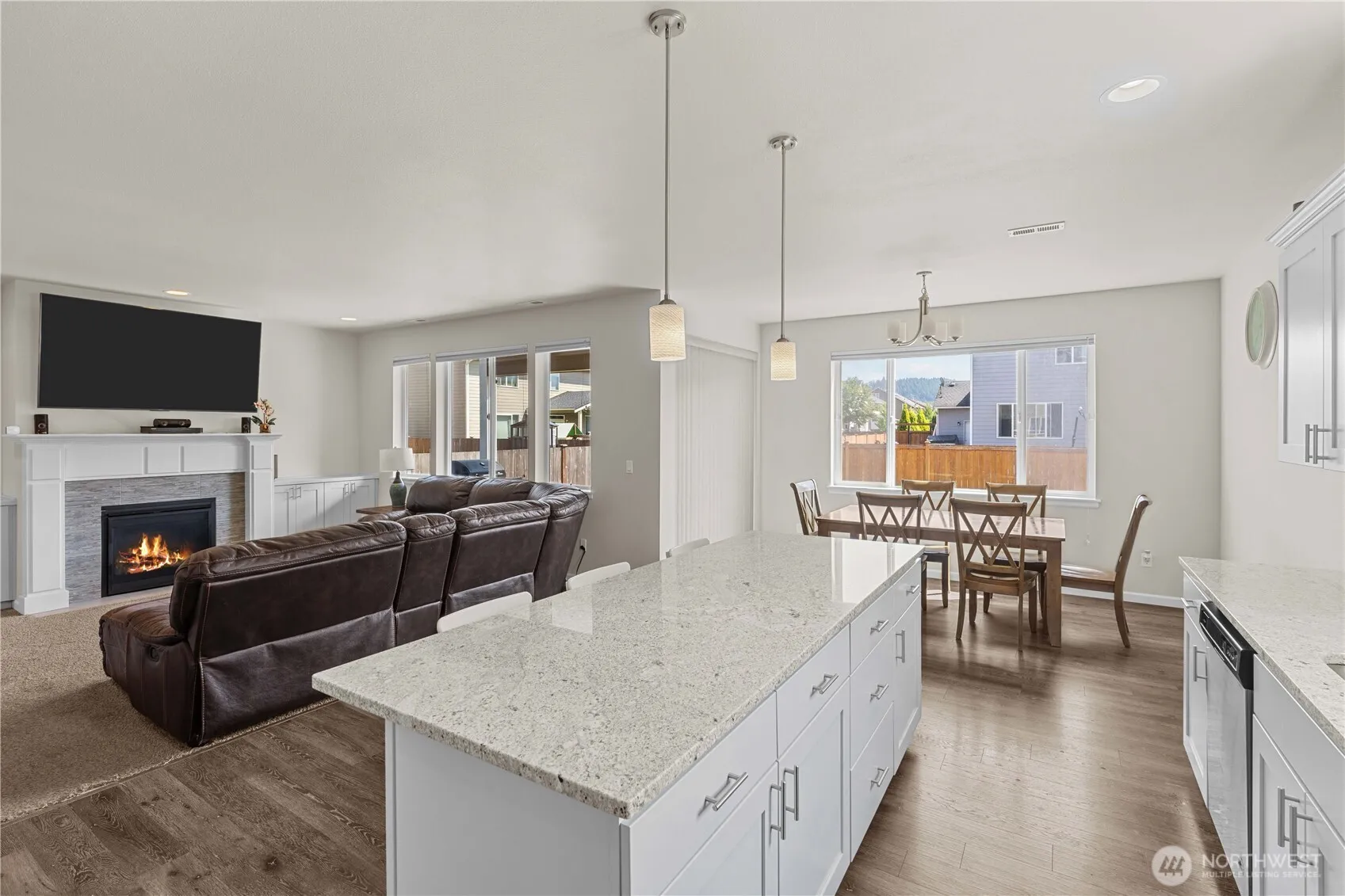 A fully thought-through, well designed home with each level of this tri-level home having purpose and a three-car garage to meet the demands of the interior space. The main level offers a private office and an expansive great room that overlooks your bright, open kitchen, living room and fireplace and dining area, with access to a covered patio for barbecues in our Washington weather. The second floors offers privacy with an open loft and four bedrooms including the primary and personal five-piece bath plus a utility room to do laundry right where laundry belongs. The third level is a sizable bonus room that offers a bath and shower as well, perfect for guests or playrooms or an additional bedroom, if needed. Welcome home and hurry home.