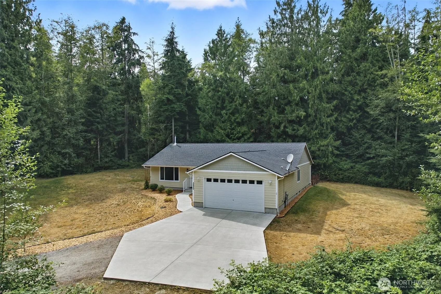 Welcome to your private oasis, room for everything you can imagine. Located on a private sunny 2.5 acres, surrounded by trees. This 3 bed, 2 bath all main level home is move in ready. Open concept great room with vaulted ceiling. Fenced area around patio for easy in and out entertaining. Well situated kitchen with granite and island. Whole house water filter. Brand new carpet in bedrooms, and easy care hardwood laminate in living area. New interior paint, a walk-in pantry. Primary bedroom has walk in closet and private bath. Ample parking. Great location- 13 min to Poulsbo, 20 min. to Kingston Ferry, 22 min. to Silverdale. and 30 min. to Bainbridge Island Ferry. Fiber optic is at Fox Glove & Johanson (the street next to the house).
