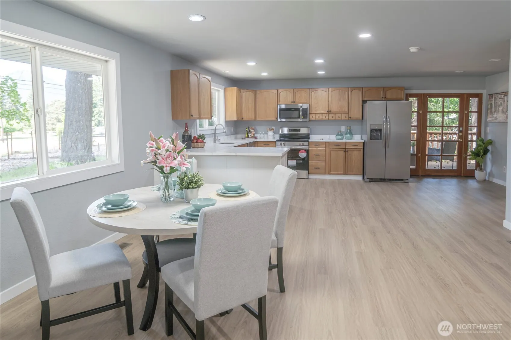 Beautifully remodeled Packwood retreat on a full acre! This spacious 5-bedroom, 2.75-bath home offers over 3,100 sq. ft. of comfortable living with an open-concept design perfect for gathering. The updated kitchen shines with white quartz counters, stylish backsplash, and brand-new stainless steel appliances. Main bathrooms feature new vanities and modern finishes. The lower level boasts a versatile bonus room—ideal for hobbies, home office, or media space. Outdoors, enjoy expansive decks (including one off the primary suite), a huge backyard, and plenty of room for entertaining. Covered parking for 3 plus additional space for RV/boat storage. Surrounded by mature trees for privacy yet just minutes to restaurants, breweries, and shops!