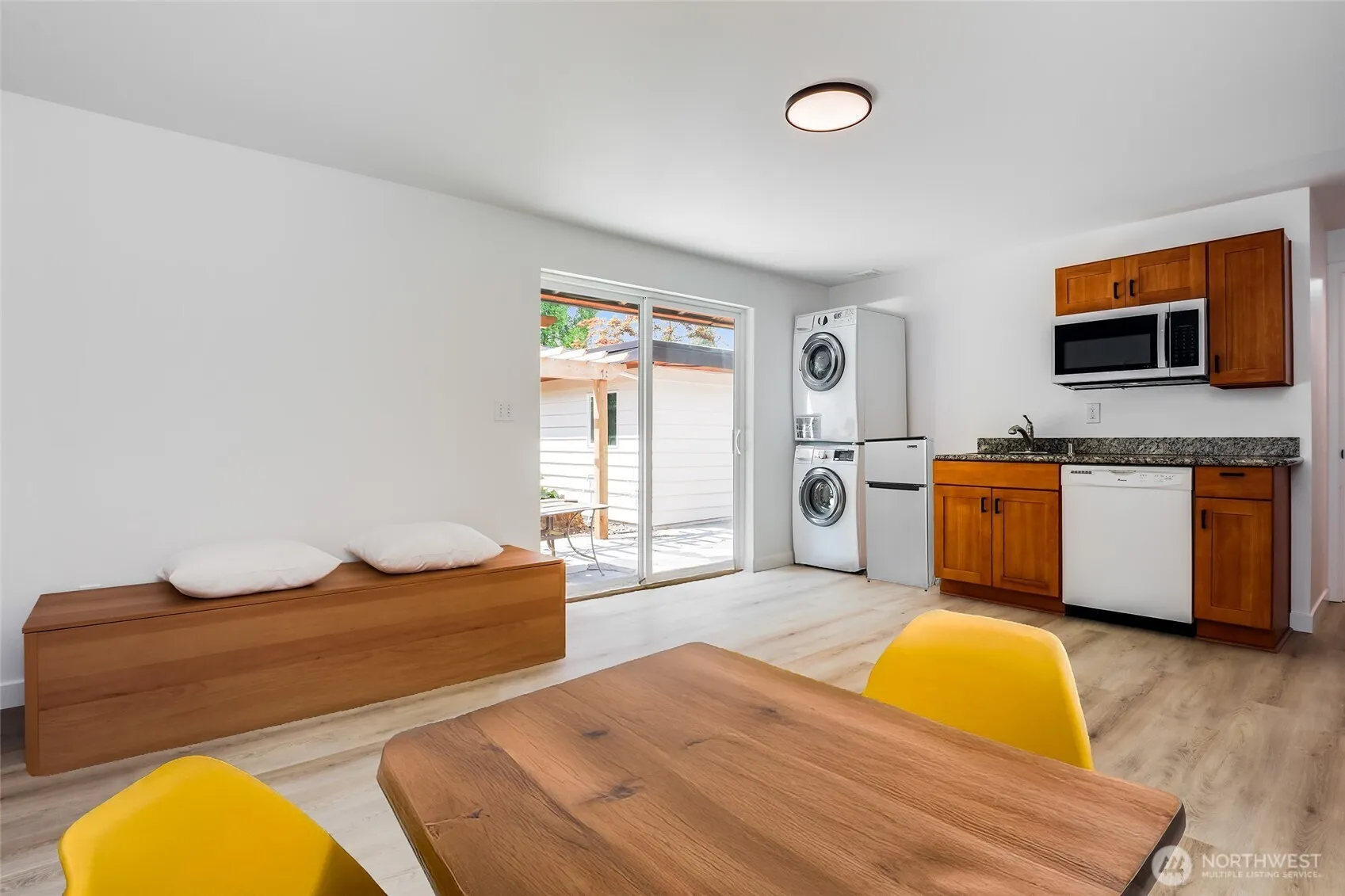 Welcome to this beautifully updated mid-century rambler on a quarter-acre corner lot. The single-level layout offers seamless living; the main home hosts 6 bedrooms, 2 baths, 3 living spaces PLUS an attached 1 bed/1 bath ADU (a total of 7 beds/3 baths)! This layout is ideal for multigenerational living, rental income or AFH. Updated kitchen central to the home, slab counters & SS appliances. The East wing has 3 beds, updated hall bath & access to the ADU. The West wing has 3 beds & full bath. Recent updates: interior/exterior paint, refinished hardwoods, new LVP flooring, new 30-yr roof. ADU has kitchenette & laundry hookups. Outside find a well-kept yard, private patio & RV parking. Conveniently located near shopping & light rail.
