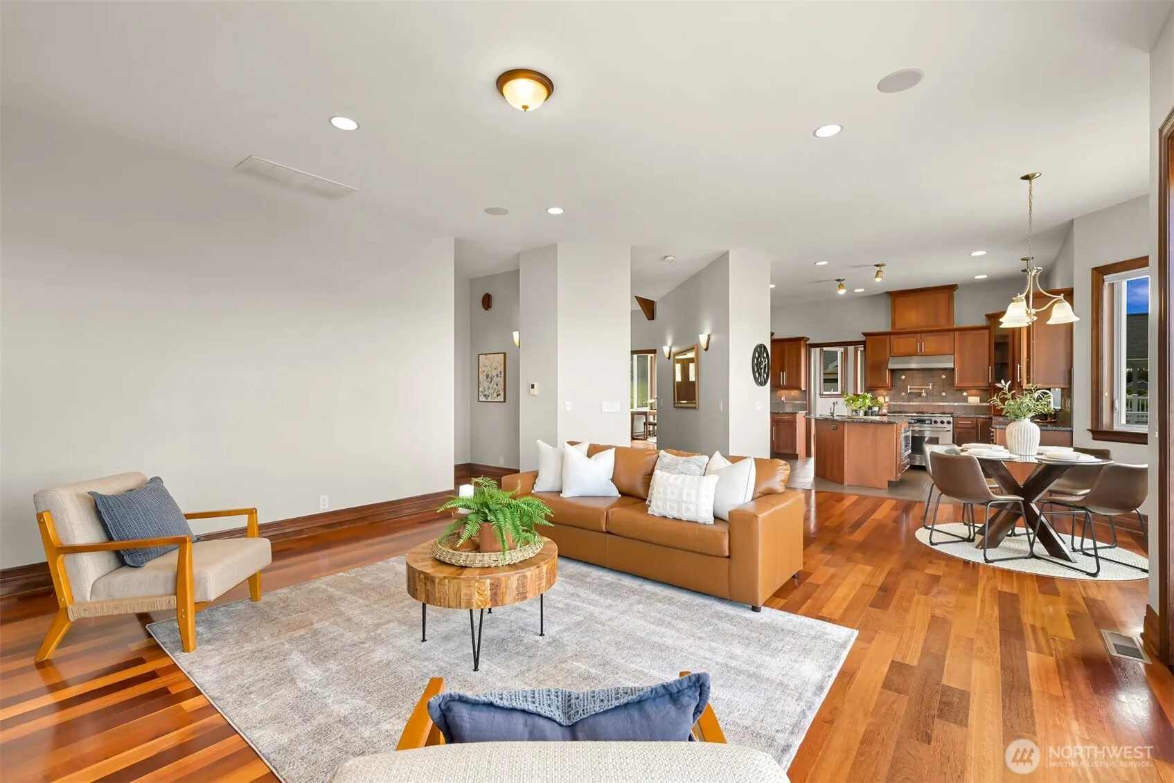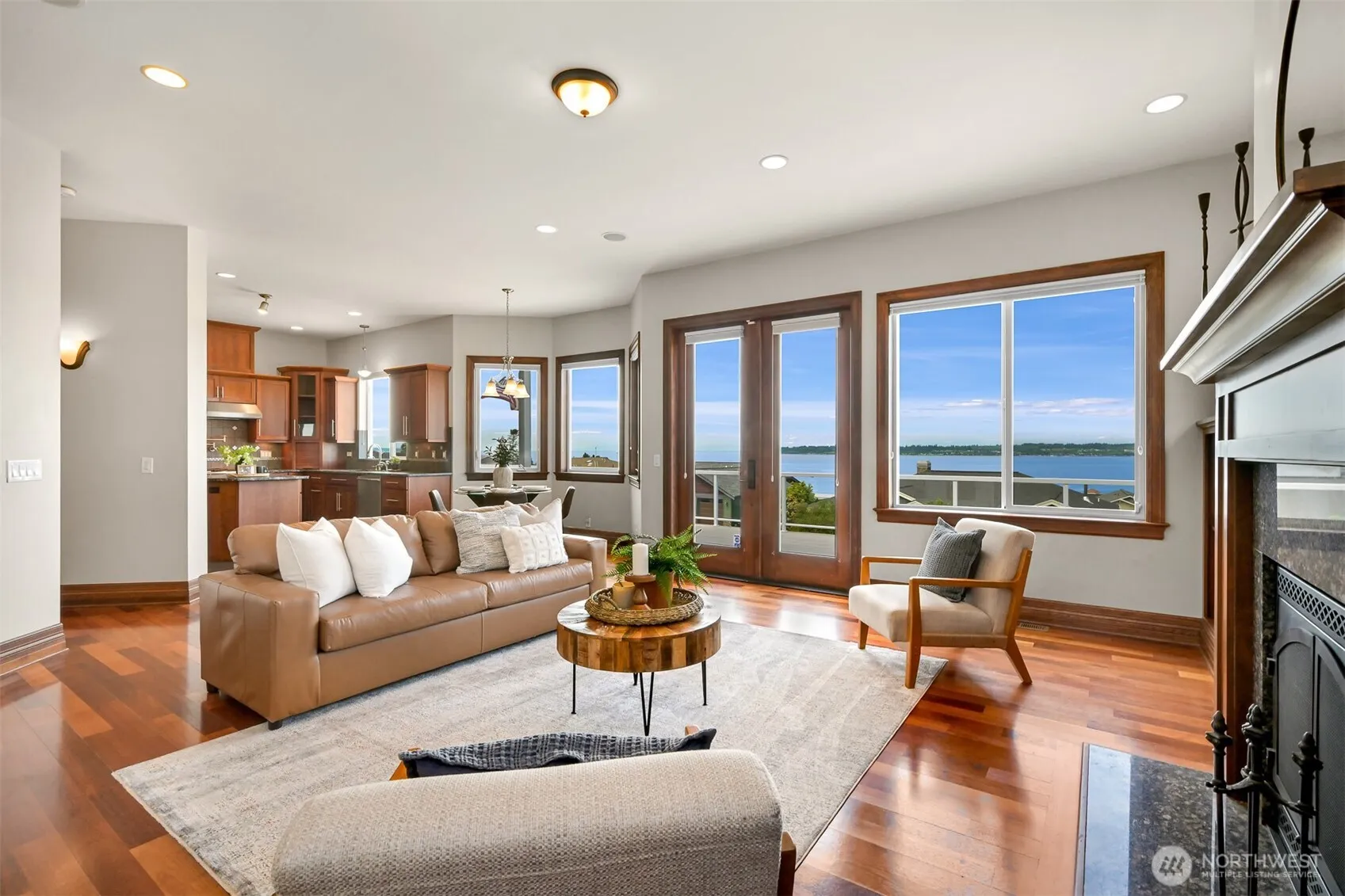 Uniquely beautiful home in the coveted Whitehorn neighborhood with sweeping views of the ocean, mountains, and stunning sunsets from EVERY floor. This custom 4BD/3.75BA JWR-designed home offers a flexible layout ideal for guests or multigenerational living, with a lower-level kitchenette and whole-house surround audio. Premium finishes include slab granite, rich hardwoods, hemlock-wrapped trim, dual-fuel chef’s range, formal dining, central vac, and a whole-house generator. Beautifully landscaped with irrigation, 3 car garage, deeded beach access, and a spacious deck perfect for entertaining—this home truly captures the best of coastal Pacific Northwest living.