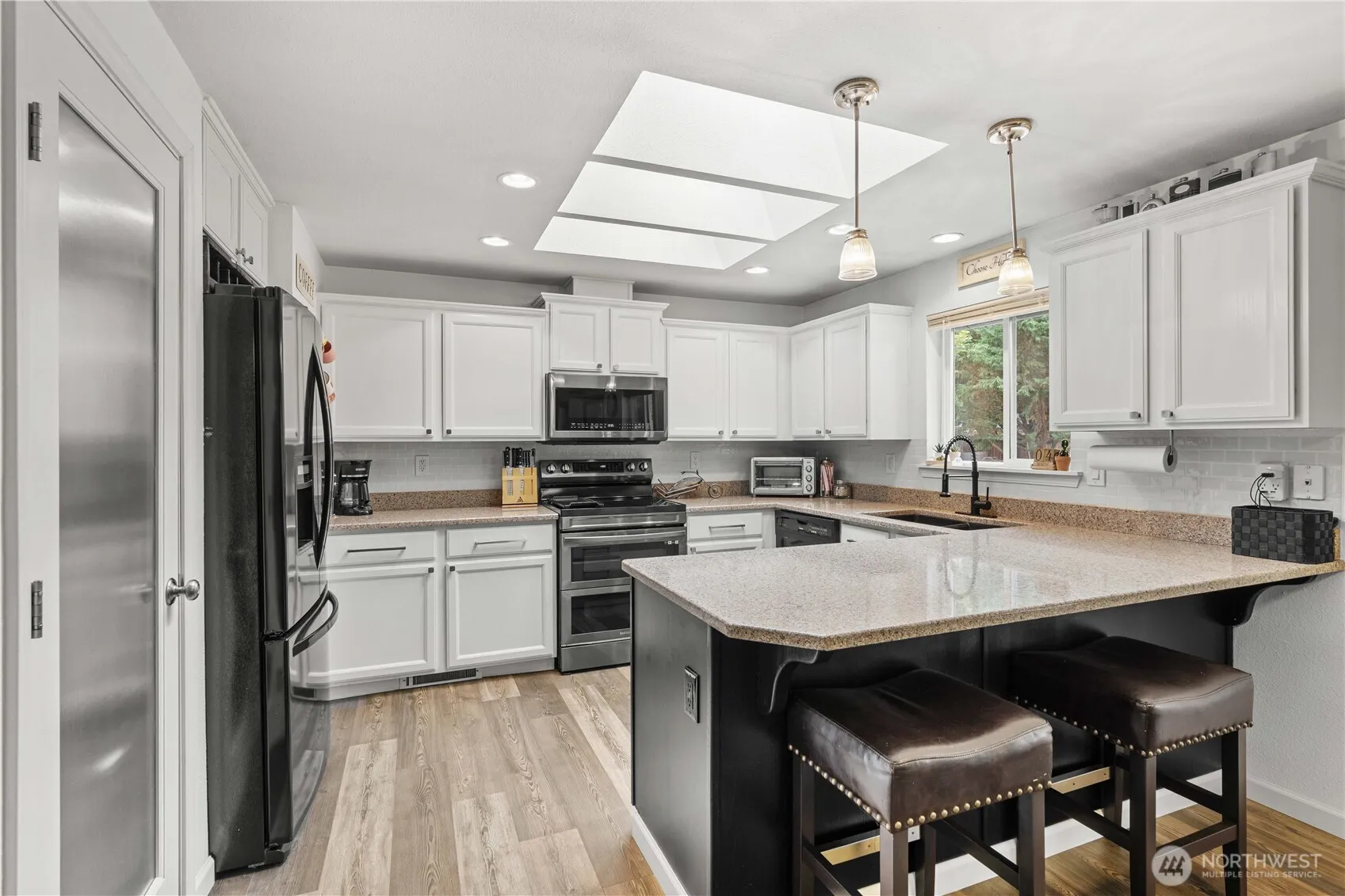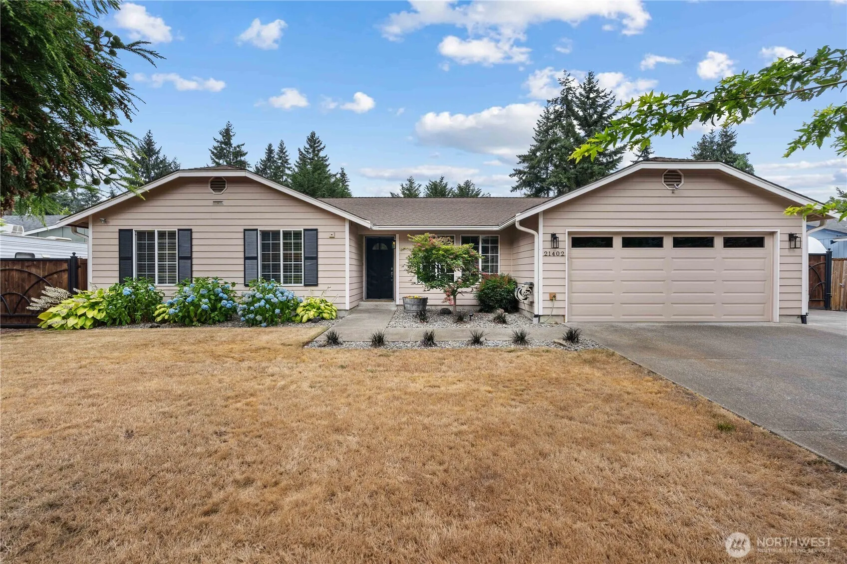 This updated rambler screams pride of ownership inside and out with a welcoming community that makes it feel more like home. From the well-loved exterior and landscaped yard to an interior that puts well-maintained on another level and a layout that unites privacy and gathering. Three bedrooms including a primary with a walk-in closet and primary bath, open kitchen with durable, silestone counters and bar seating, vinyl flooring, stainless steel appliances and double oven, two living room areas and a two-car garage with built-in storage. The exterior is hard to beat with an elongated driveway, drive-in gate access on both sides of the home, covered patio and fire pit, two custom sheds and a concrete RV parking pad with hot tub hookups.