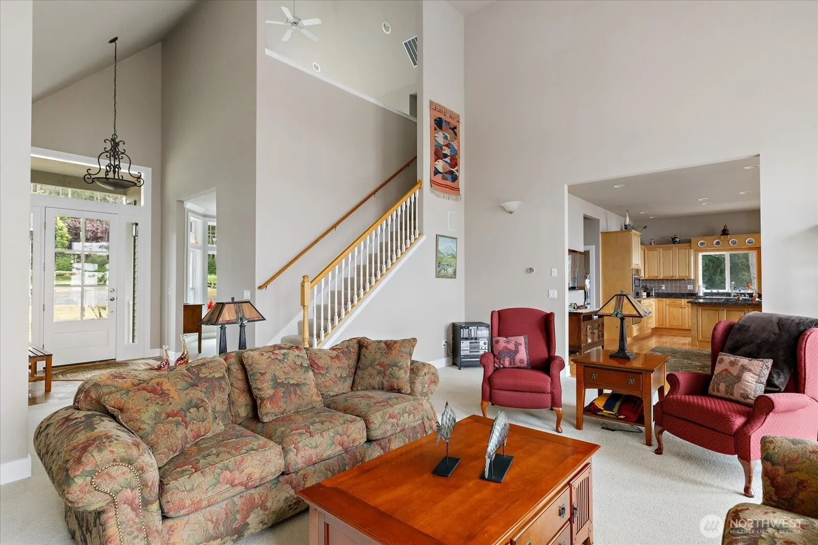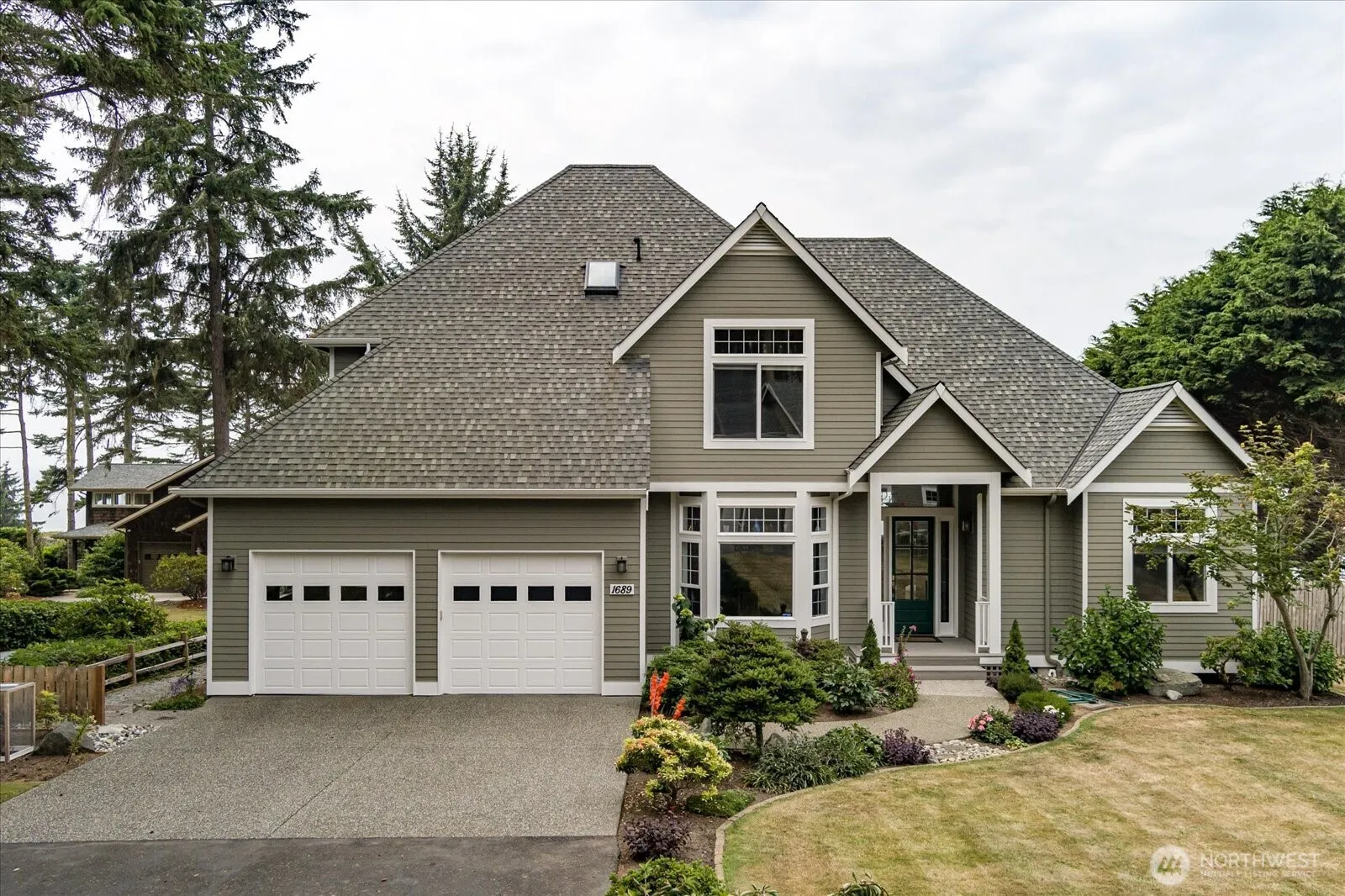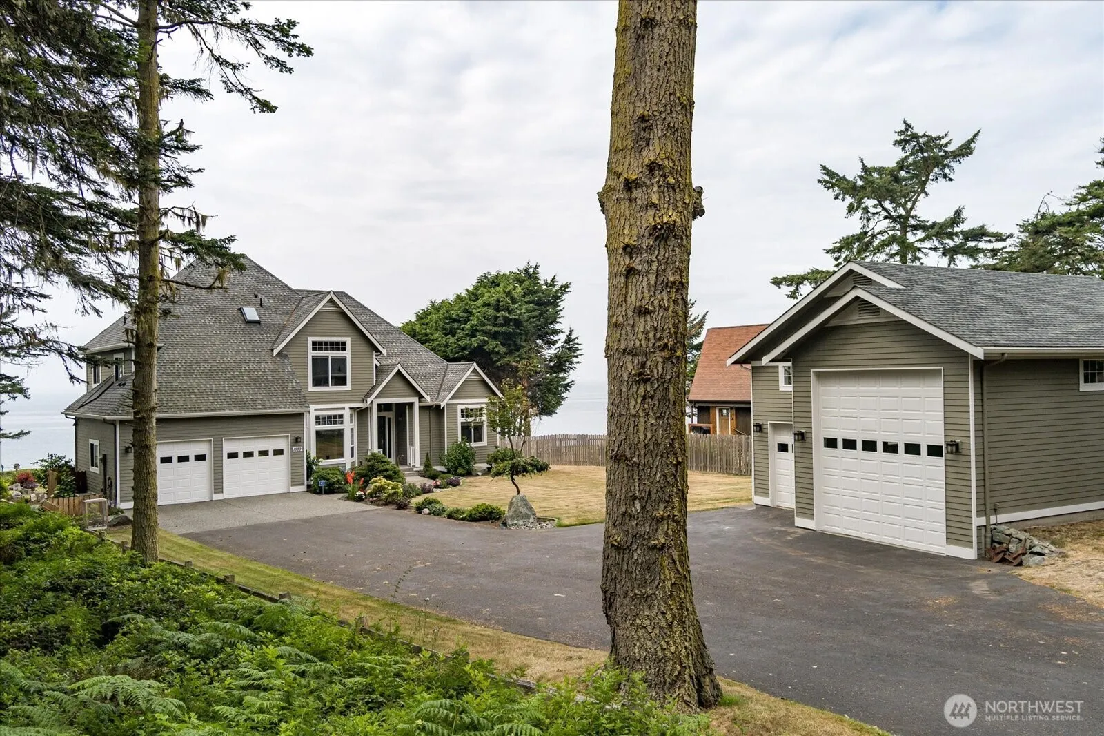 Elegant Westside waterfront home on a generous 0.75-acre lot with sweeping views of the water and Olympic Mountains. This beautifully designed 3-bedroom + den retreat features 20’ vaulted ceilings, a striking marble tile entry, and a spacious living area with a cozy gas fireplace. The chef’s kitchen offers maple cabinetry, granite counters, a center island, and a 5-burner gas cooktop—perfect for entertaining. The luxurious primary suite includes a jetted tub, dual vanities, and French doors that lead to a large Trex deck with breathtaking views. Additional highlights include 10’ ceilings, stylish pewter bath fixtures, stunning aggregate walkways, and a detached shop with RV hookups and a 3/4 bath. A true island gem!