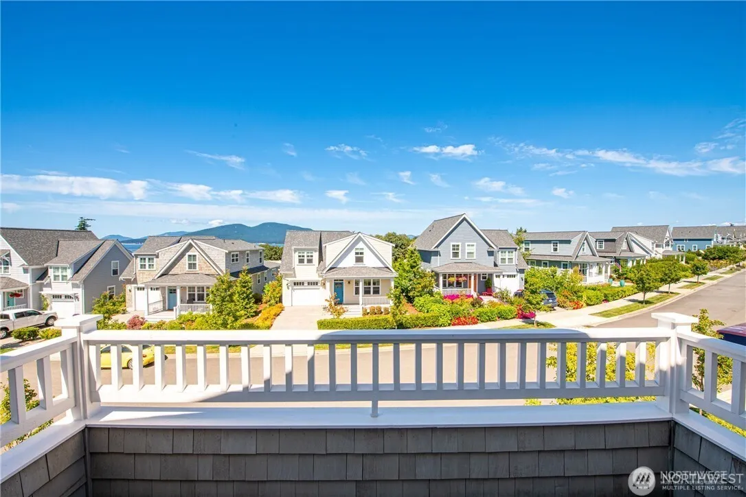 Cape Cod charmer in sought-after San Juan Passage neighborhood with 5 community parks, pickle ball court & firepit and with direct access to Guemes Channel Trail. This home boasts timeless street appeal, front porch, upper deck (with views!!) and a meticulous French inspired back garden and patio. Main floor has open plan, wood floors, slab stone counters in kitchen, dining room, gas fireplace with built-in shelving in living room. Main also has primary bed & bath and powder room. Additional 2 bedrooms and full bath on 2nd floor. Attached one car garage. Enjoy this close knit community and even walk to the San Juan Ferry!