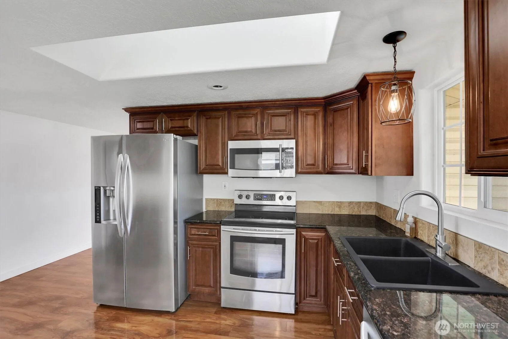 You will find the perfect blend of comfort and convenience in this 3 bedroom, 3 bathroom home offering a large master bedroom on the main floor with a jetted tub, another large bedroom on the main floor with the third bedroom and bathroom on the second floor. The basement is finished and could accommodate a great bonus room or additional storage area. Vinyl fencing all around the back yard leading to the detached garage with access to the alley. The yard offers a pear tree and plenty of room to play while keeping the yard work low. Located in a desirable Spokane area close to schools, shopping, dining and public transportation.