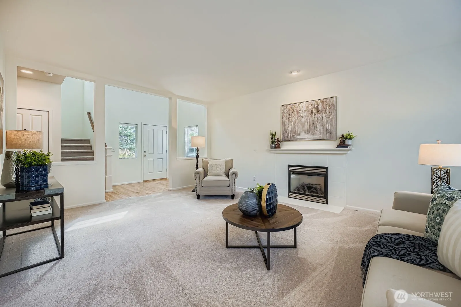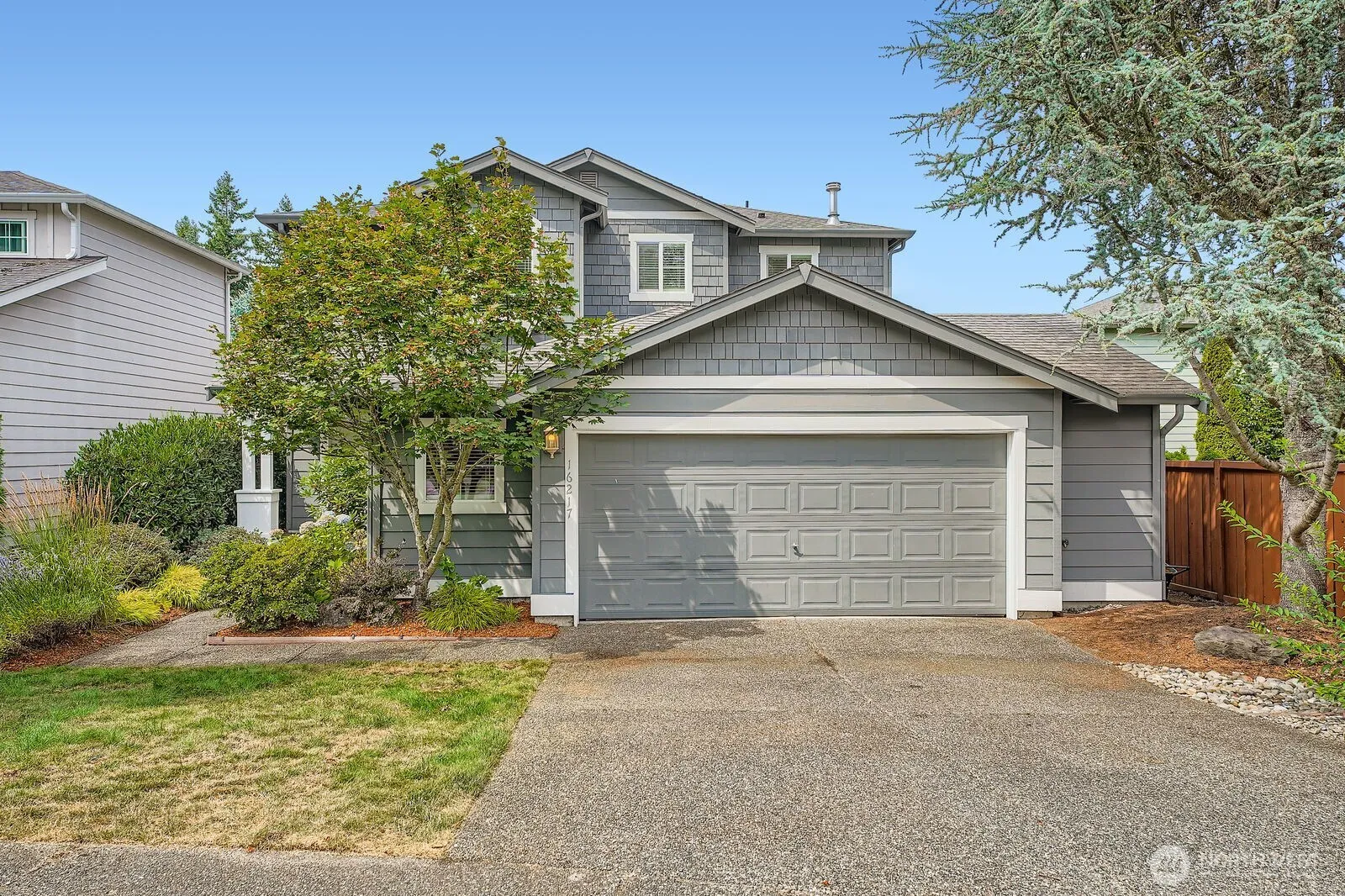 Clean and “move-in” ready with new carpet and fresh interior paint. Two Story home tucked away in a low traffic setting. Spacious entry welcomes you in with vaulted ceilings and an open spindle rail staircase. Large living/family room with a gas fireplace is the gathering place. Functional and attractive kitchen with enough space for making meals together, a center island with breakfast bar and space for a table. Primary suite features a private five-piece bath and a walk-in closet. Convenient upstairs laundry room has a folding counter and linen closet. It’s a two-car garage but its huge with dedicated workshop space and an area for storage or parking for a motorcycle or other small RV. Minutes to downtown Covington and all it has to offer
