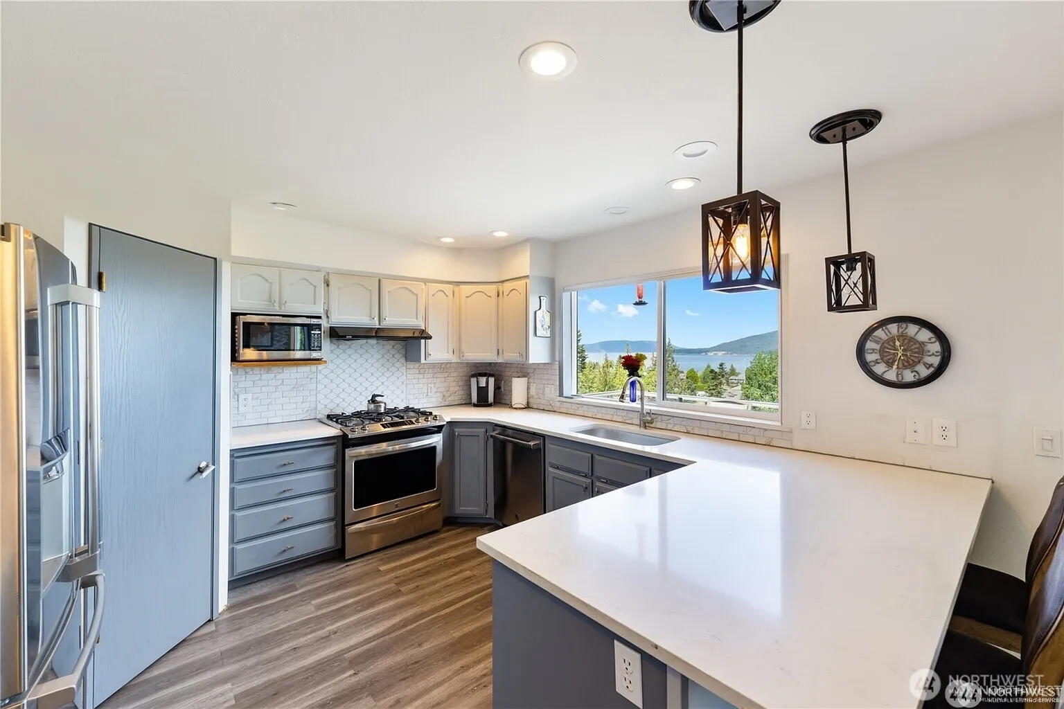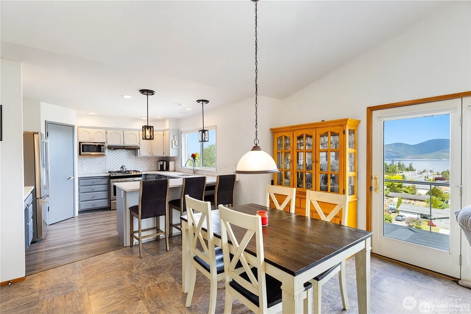 Experience breathtaking views of the San Juan Islands & Guemes Channel from this elevated hillside home. The open-concept living, dining, & kitchen area features vaulted ceilings, picture windows, & cozy corner fireplace, perfect for entertaining. The gourmet kitchen boasts granite countertops, stainless steel appliances, & a walk-in pantry for ample storage. Retreat to the main-level primary suite, complete with a soaking tub, walk-in shower, & private deck access. The versatile lower-level MIL suite features a kitchenette, two bedrooms, a bathroom, & a covered deck with sweeping views. Just steps from Little Cranberry Lake, this property is a true blend of comfort & nature. Updates – new siding 2024 & heat pump/AC installed 2025.