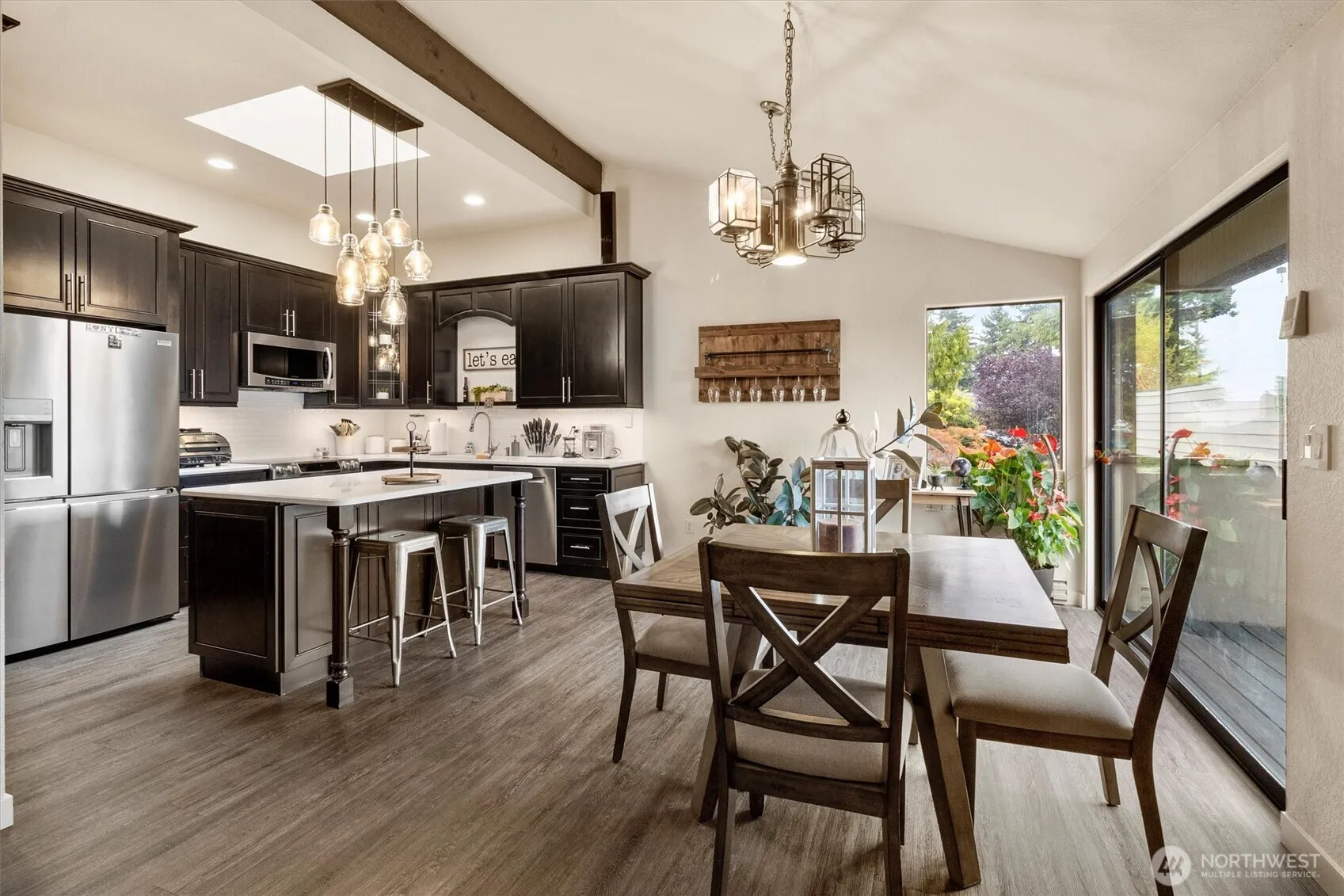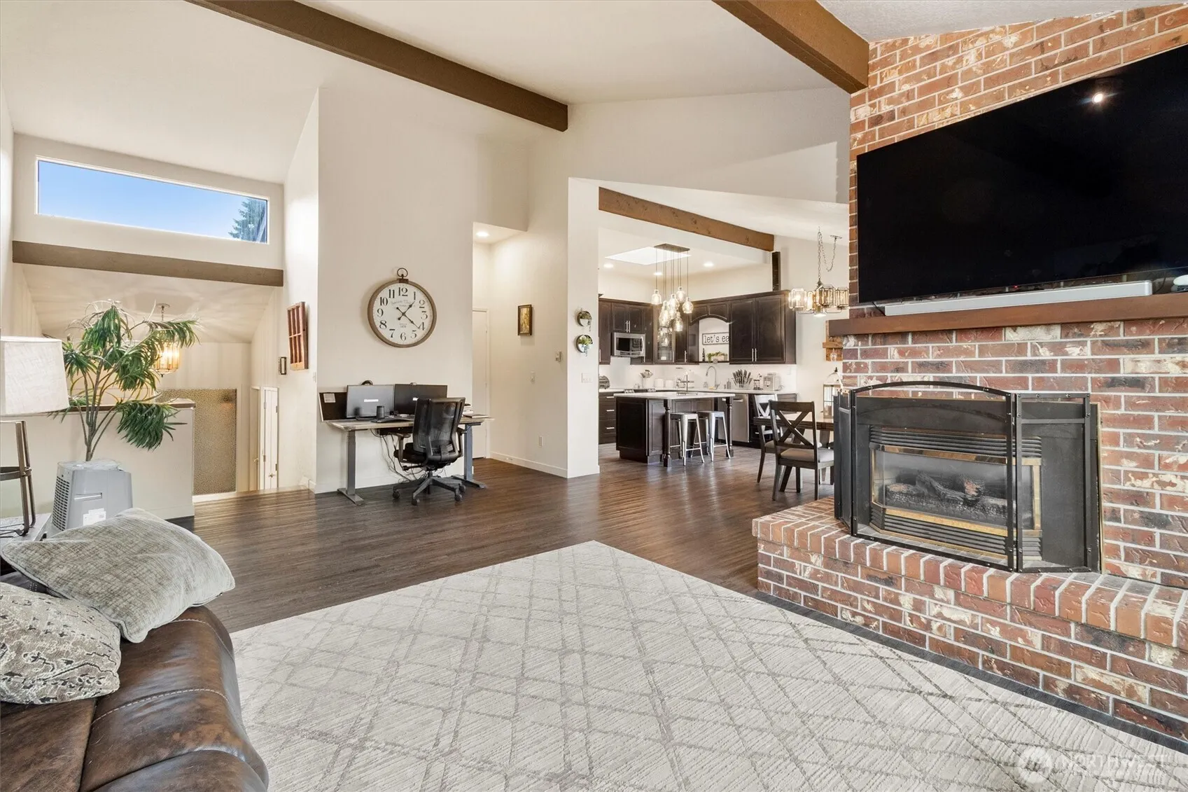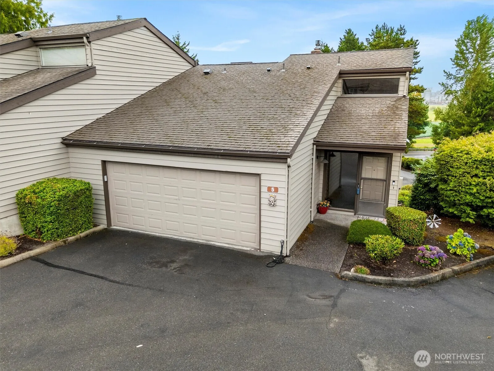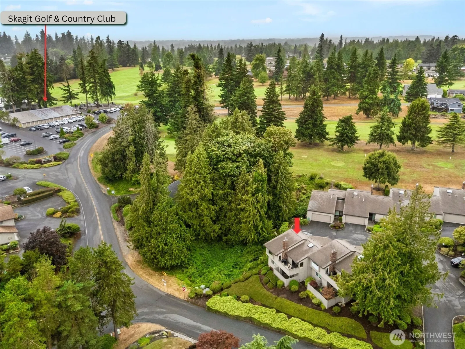Peaceful Oasis next to Skagit Golf & Country Club! Desirable end-unit townhome style condo w/ flowing layout. Recently updated kitchen, living room & flooring. Open layout features vaulted ceilings, cozy gas fireplace & dining area that connects to a private deck, perfect for morning coffee or evening relaxing. The kitchen has plenty of cabinet & pantry space & designed for easy cooking & entertaining. Primary suite includes 3/4 bath, walk-in closet & private patio access. Lower level also includes a second bedroom, full bath & laundry area. A two-car garage with a newer door adds convenience. This quiet golf course community offers a low-maintenance lifestyle close to the clubhouse, five mins to I5 & seven mins to Burlington shopping!