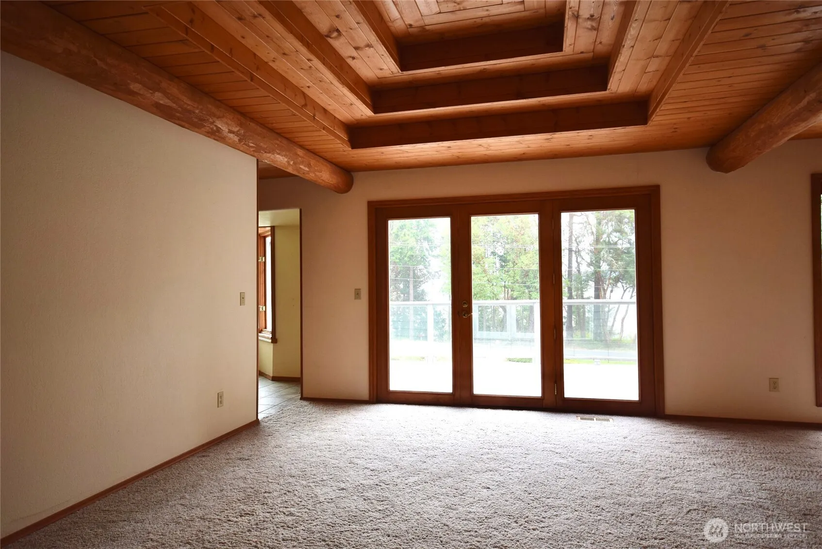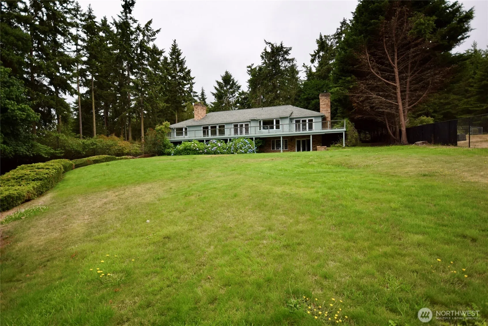 Fabulous 4095 square foot home with 3 car garage on 1.25 acres across from Sequim Bay. Stunning custom wood ceilings with inset logs for a warm, cozy feeling as you relax & enjoy the view. 2 wood stoves & propane fireplace can heat the whole house. Stunning kitchen has granite counters, wood ceilings & eating nook with full windows to the view. 2 formal dining areas, 1 which could be family room. Water view decking across the entire front of house. Extra large primary bedroom has lovely water view, 2 closet areas, bath with tub, custom tile shower & private deck. Downstairs has cozy rec room, custom bar & huge 3rd bedroom with 3/4 bath. Large utility room could be shop/work area. Fully fenced with electric gate, dog run area & outbuilding.
