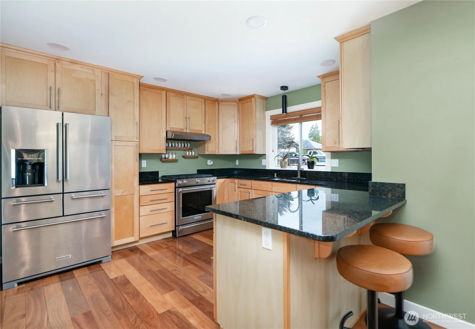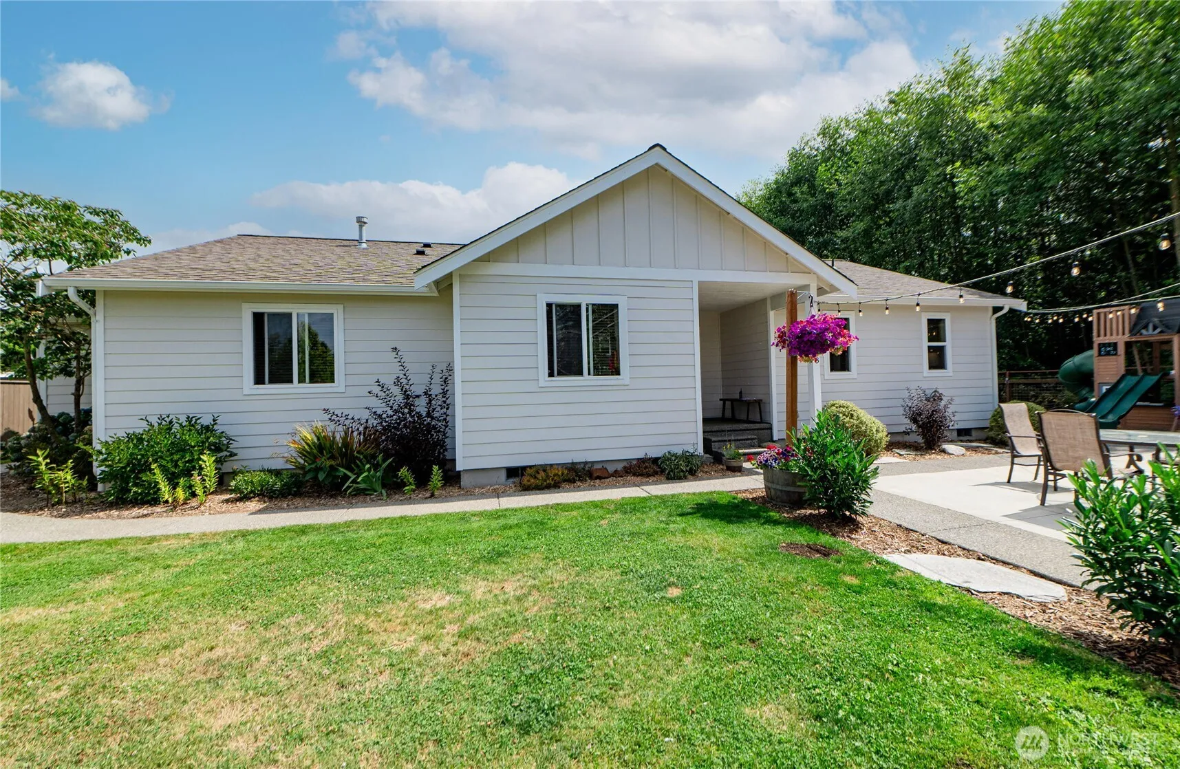 Fantastic SINGLE LEVEL living just minutes to the heart of downtown Blaine…welcome to Wilson Avenue! This is the floor plan you’ve been waiting for: 3 bedrooms with no stairs that features an open concept living/dining/kitchen design, hardwood flooring, granite counters, S/S appliances, vaulted ceilings + wood burning fireplace. Delightful fully fenced yard with 20×34′ patio, string lights & raised garden beds abutting a green space. Established neighborhood w/ the flexibility of no HOA + just steps to a community park. BONUS: RV hook up with water, sewer dump and 50 amp service plus attached two car garage. Ideal location w/ easy access to I-5, two US/Canada border crossings & to downtown dining, shopping, schools & saltwater marina.