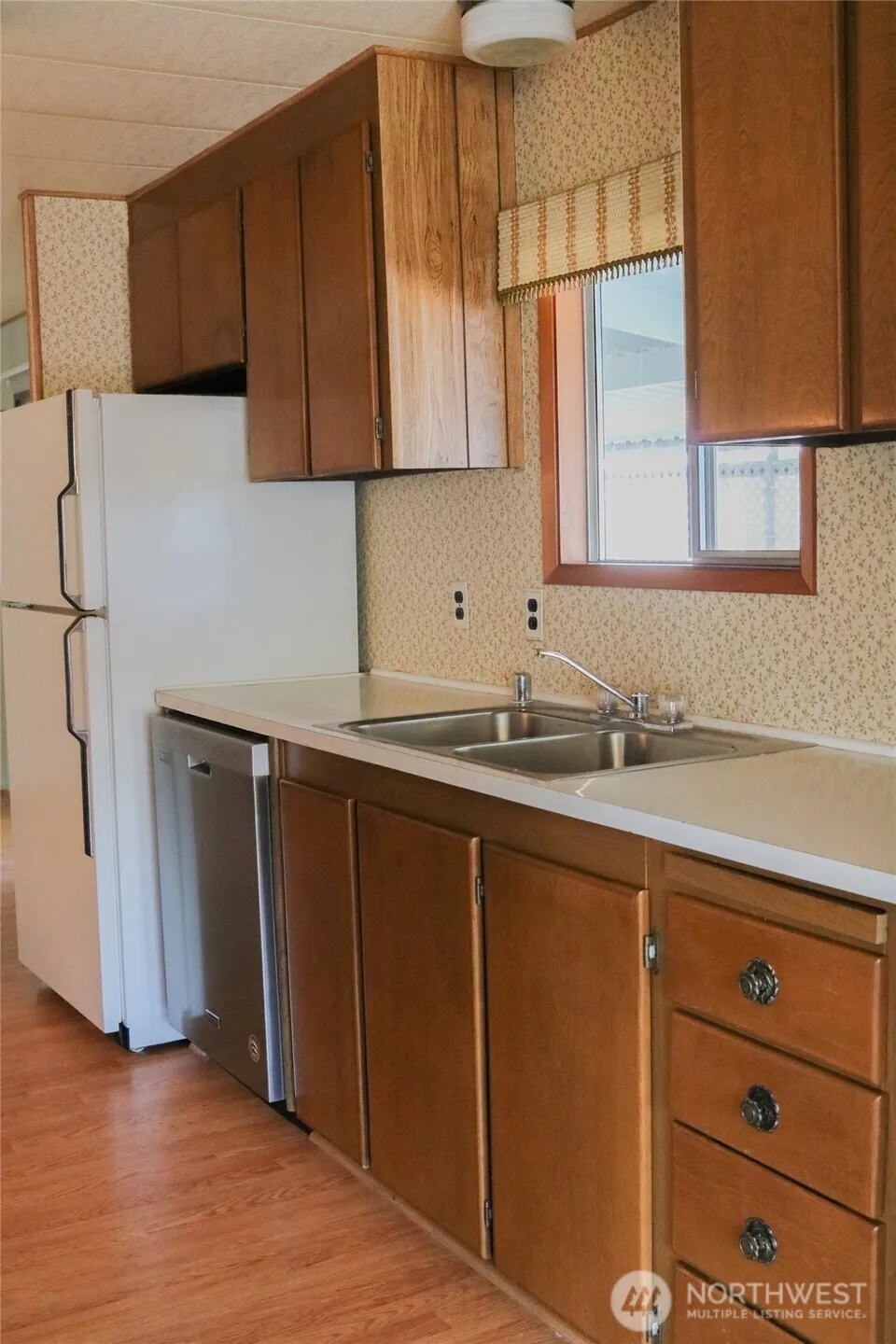 This home offers a peaceful setting with a walking path just behind the property. It features three bedrooms and two bathrooms, with a spacious living room and a separate dining area that creates an inviting floor plan. The kitchen provides generous counter and cabinet space, making it functional for everyday cooking and storage. Additional amenities include a storage shed, an underground sprinkler system, and a ramp, which enhances accessibility. The seller is also offering a $3,000 flooring allowance, giving buyers the opportunity to update or customize the flooring to their preference.