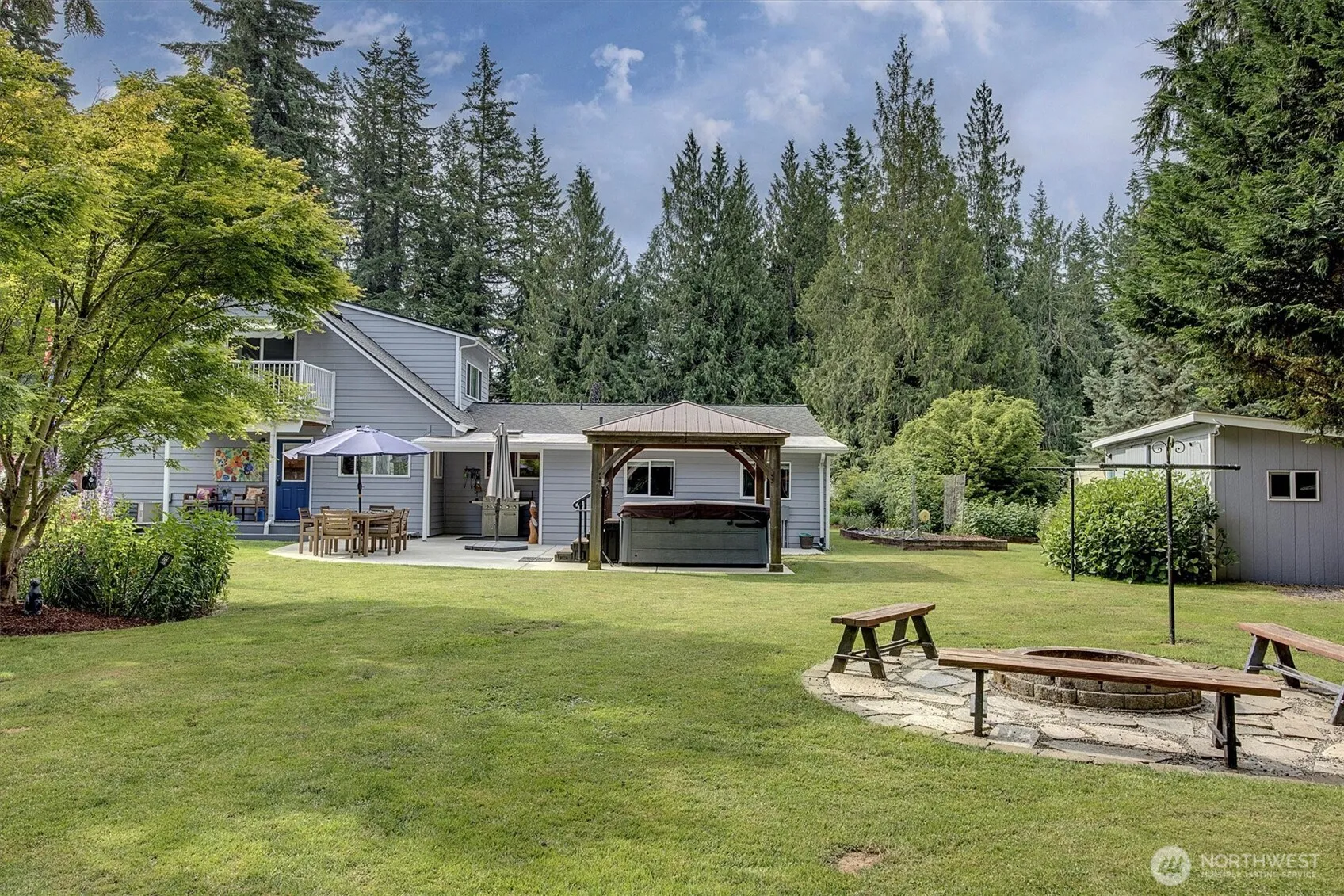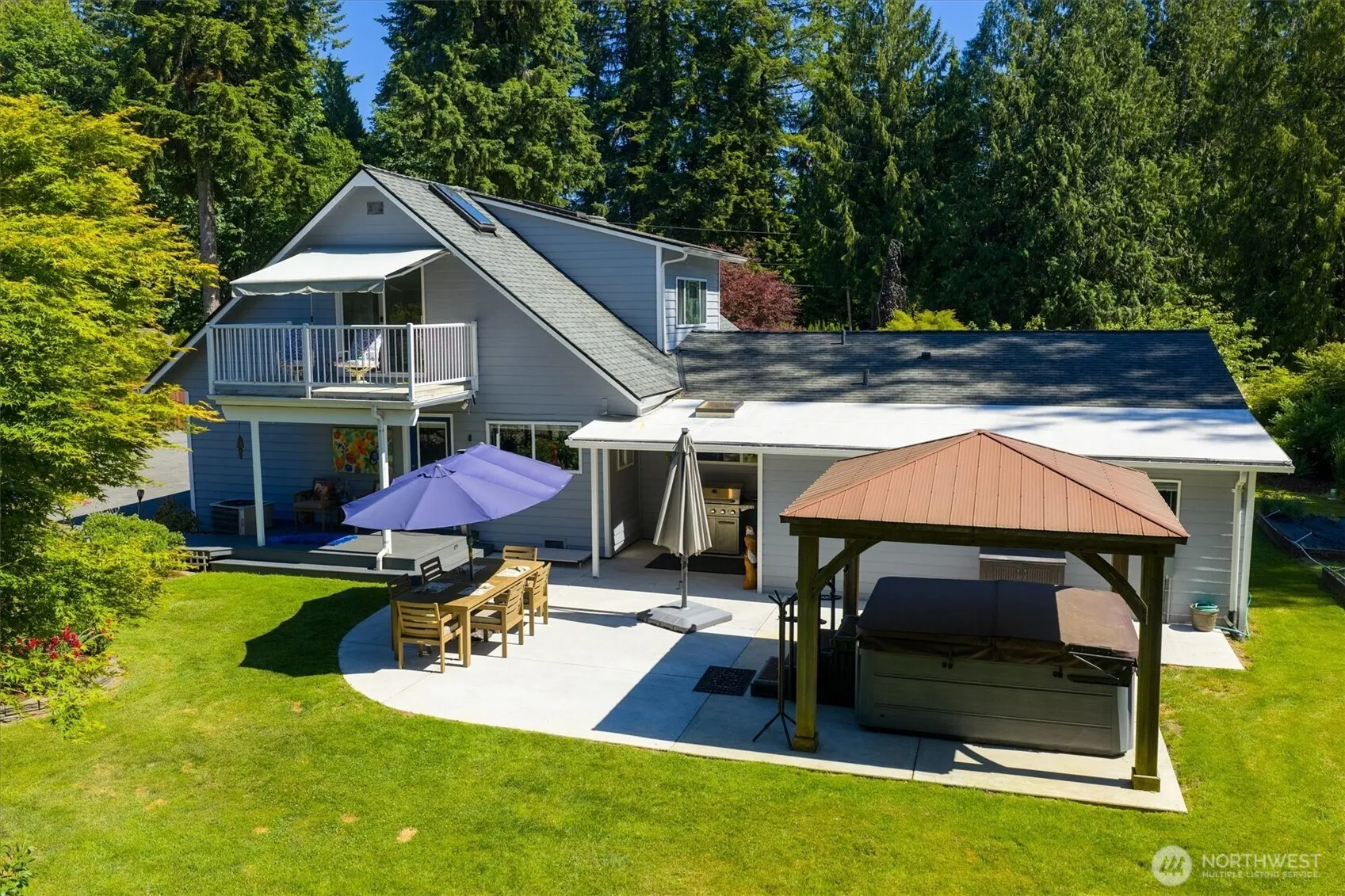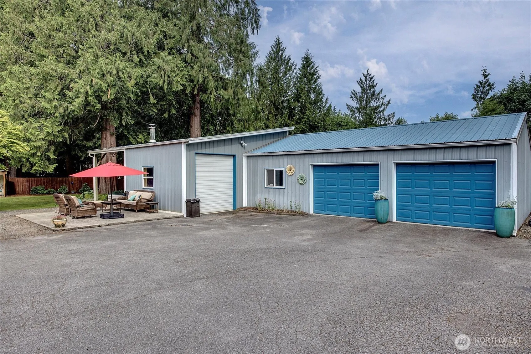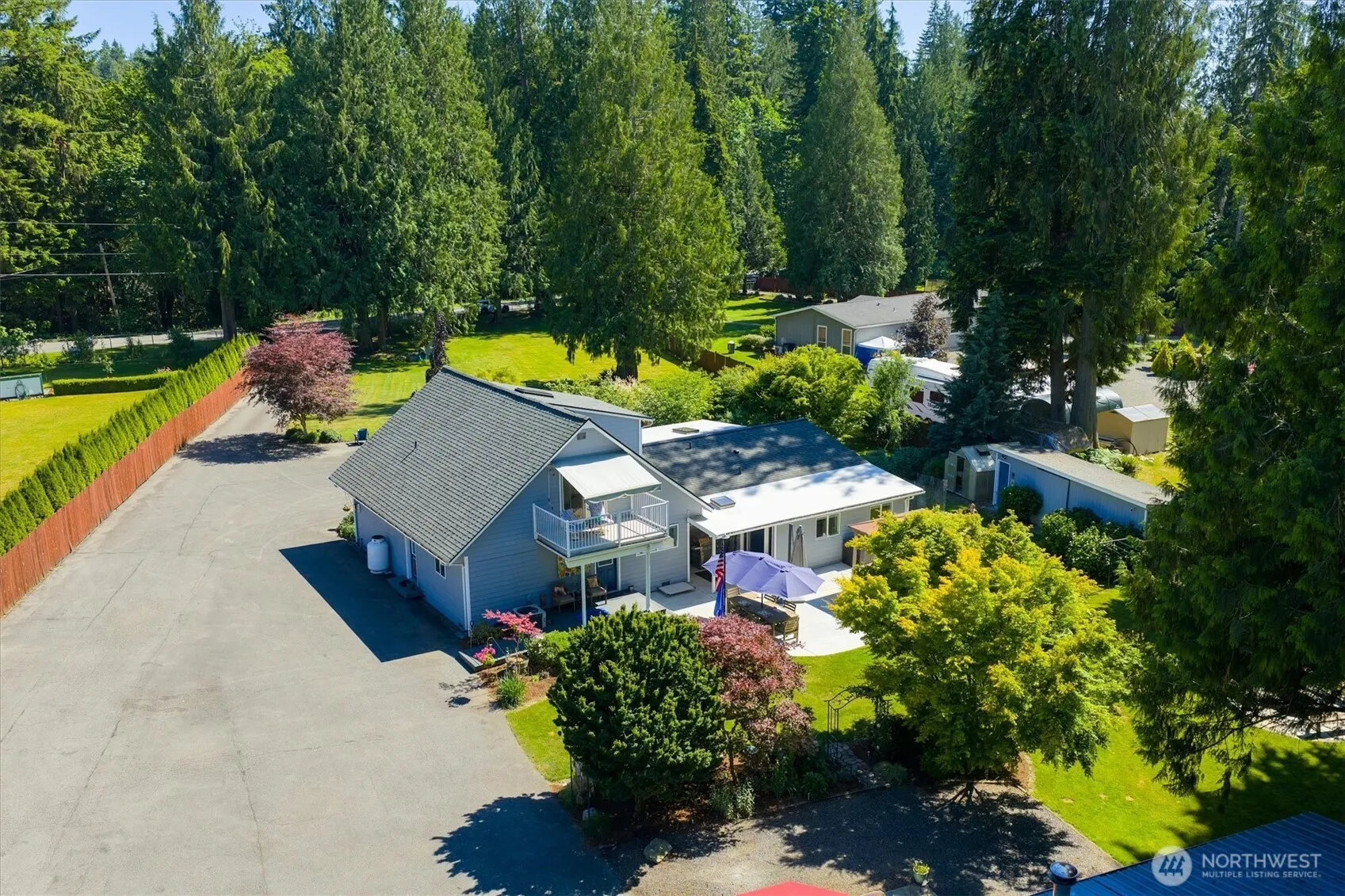 Gorgeous 1.25-acre property with beautifully updated home, RV hook-up, and oversized detached garage/shop—ideal for hobbyists, car enthusiasts, or business use. Additional plumbing offers excellent potential for a future ADU. Interior features living room w/gas woodstove, family room w/built-in bookcase, and dining area off a spacious granite/maple kitchen w/newer KitchenAid stainless appliances & breakfast bar. Includes powder room, 3 bedrooms, full bath, flex/utility room, rec room, and luxurious upstairs primary suite w/private deck & spa-like bath. Enjoy A/C, hardwoods, hot tub, greenhouse, fruit trees, fire pit, garden shed & loads of paved parking!