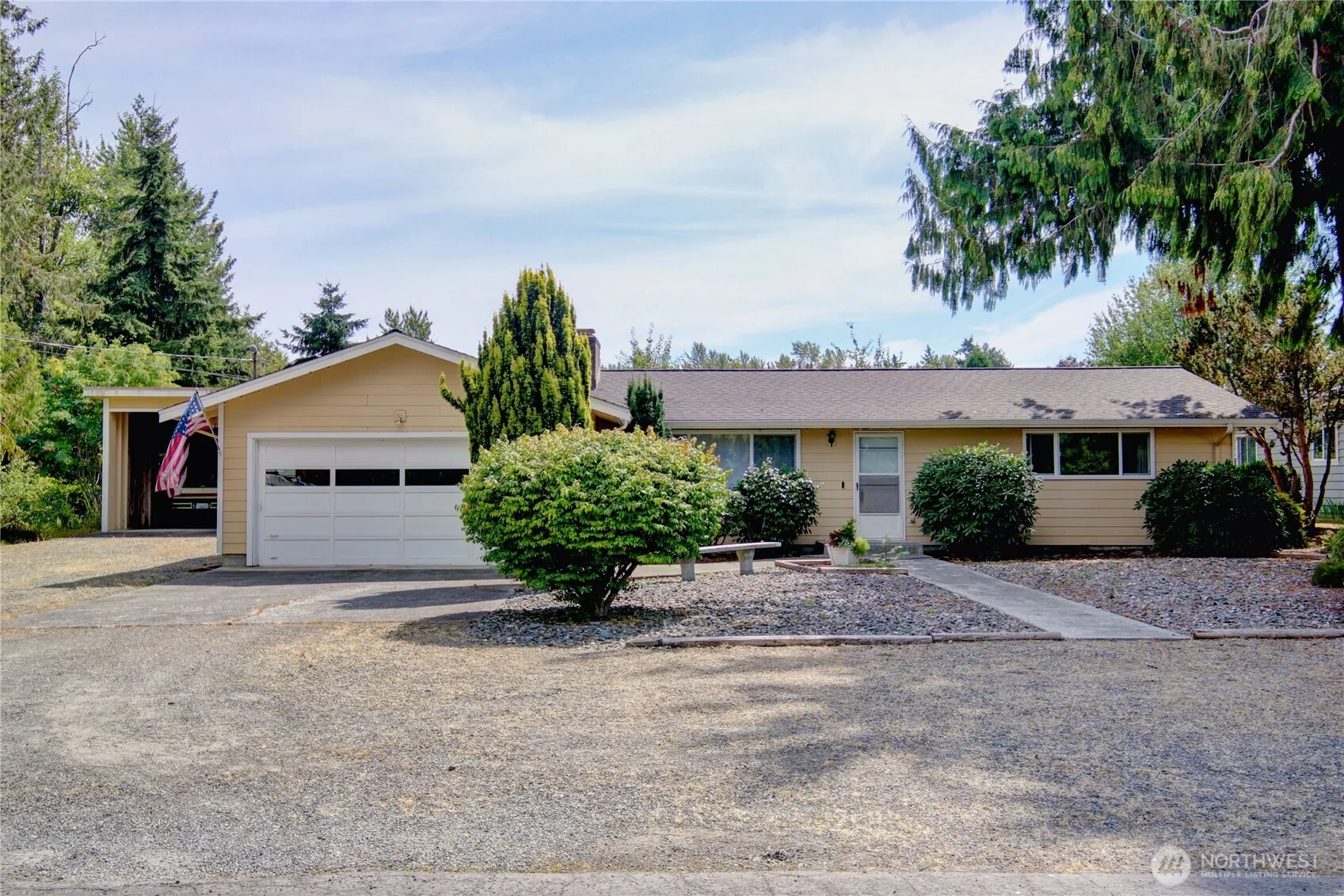 This well-maintained 1/3 acre property features a 2-car garage plus a 24×28 shop with carport, RV parking, and loads of off-street parking out front—perfect for guests or extra vehicles. Inside, enjoy the brightly updated kitchen with quartz counters & stainless steel appliances, comfortable living room with stylish fireplace, vinyl plank flooring throughout and a spacious primary bedroom. The low-maintenance yard is enhanced with mature landscaping, fruit trees and borders a retention area which offers a nice view and privacy. Located in a quiet neighborhood with great curb appeal. It is just minutes from the hospital and all local amenities. No HOA’s or 55-community but could be the perfect fit if your looking to simplify your living!