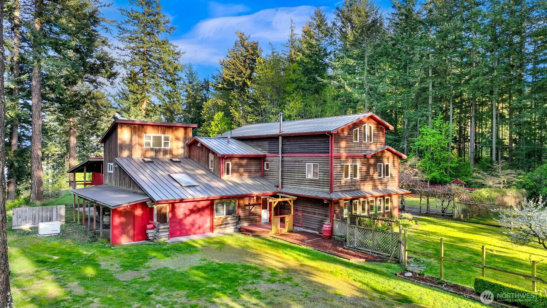 Down a tranquil country road find this recently updated home with character and charm, opening to stunning views of Hales Passage and Mt. Baker. Situated on a level 1.21 acres, find an orchard, fenced raised garden beds, and a chicken coop, if desired a sustainable and self-sufficient lifestyle. The addition of a separate apartment suite provides privacy and convenience for guests or potential rental income. Flexible living spaces within the light-filled interior with walls of windows and skylights. This versatile property caters to various lifestyle needs and multi-generational living. Step outside the dining area to a large patio with a Kiwi arbor for entertaining al fresco. Backup generator. Large garage, great storage and workshop area.