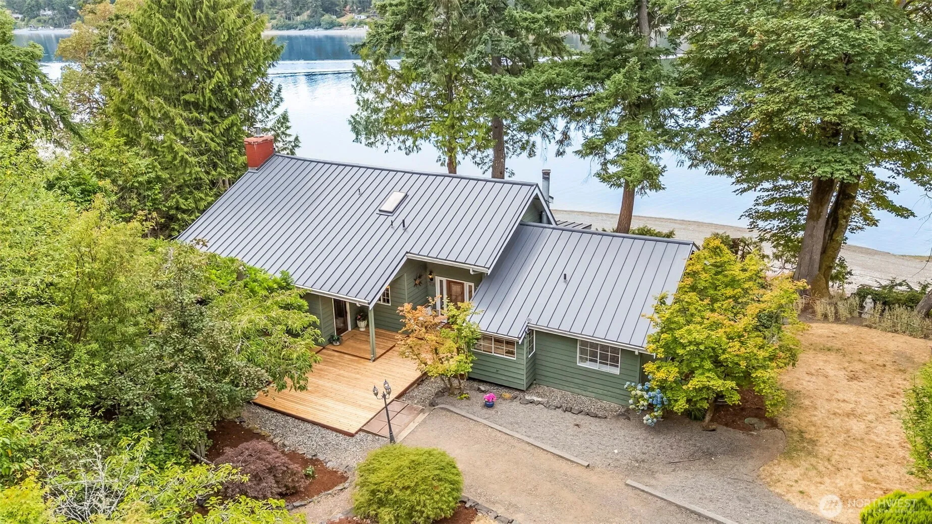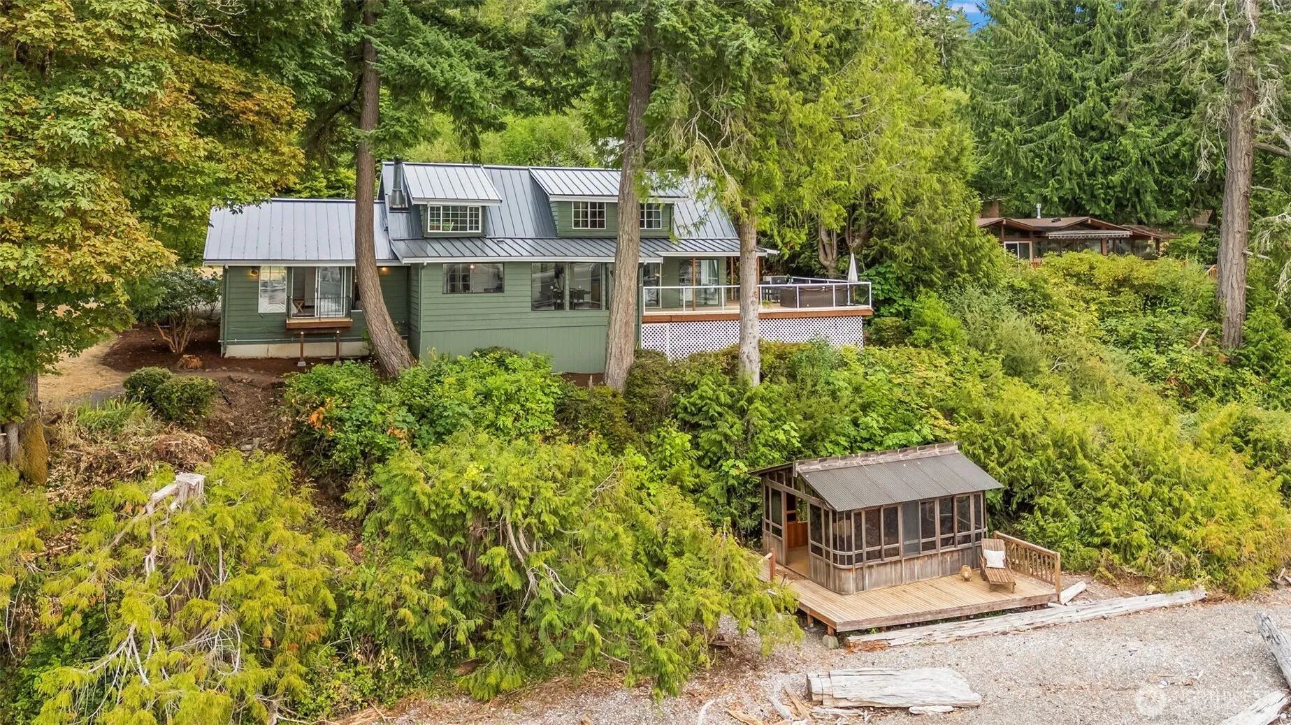 A Gentle Life by the Sea! 5 acres with 175 feet of West Facing, No Bank, Sandy-pebble beach, this Case Inlet treasure is an invitation to a slower, richer life. A place where sunsets paint the sky behind the Olympic Mountains & the tide delivers treasures to your feet. The home feels like a beloved heirloom—a timeless blend of rustic cedar with soaring ceilings, creative built-ins, & antique charm. Fireplaces in both the living room & primary warm the home year-round, while the wisteria canopied wrap around deck, gardens & greenhouse, private pond, fabulous beach cabana, & 1500 sf shop expand your world outdoors. Life here is abundantly peaceful, cozy, inspiring, & kissed by salt air—a coastal hideaway in every sense of the word.