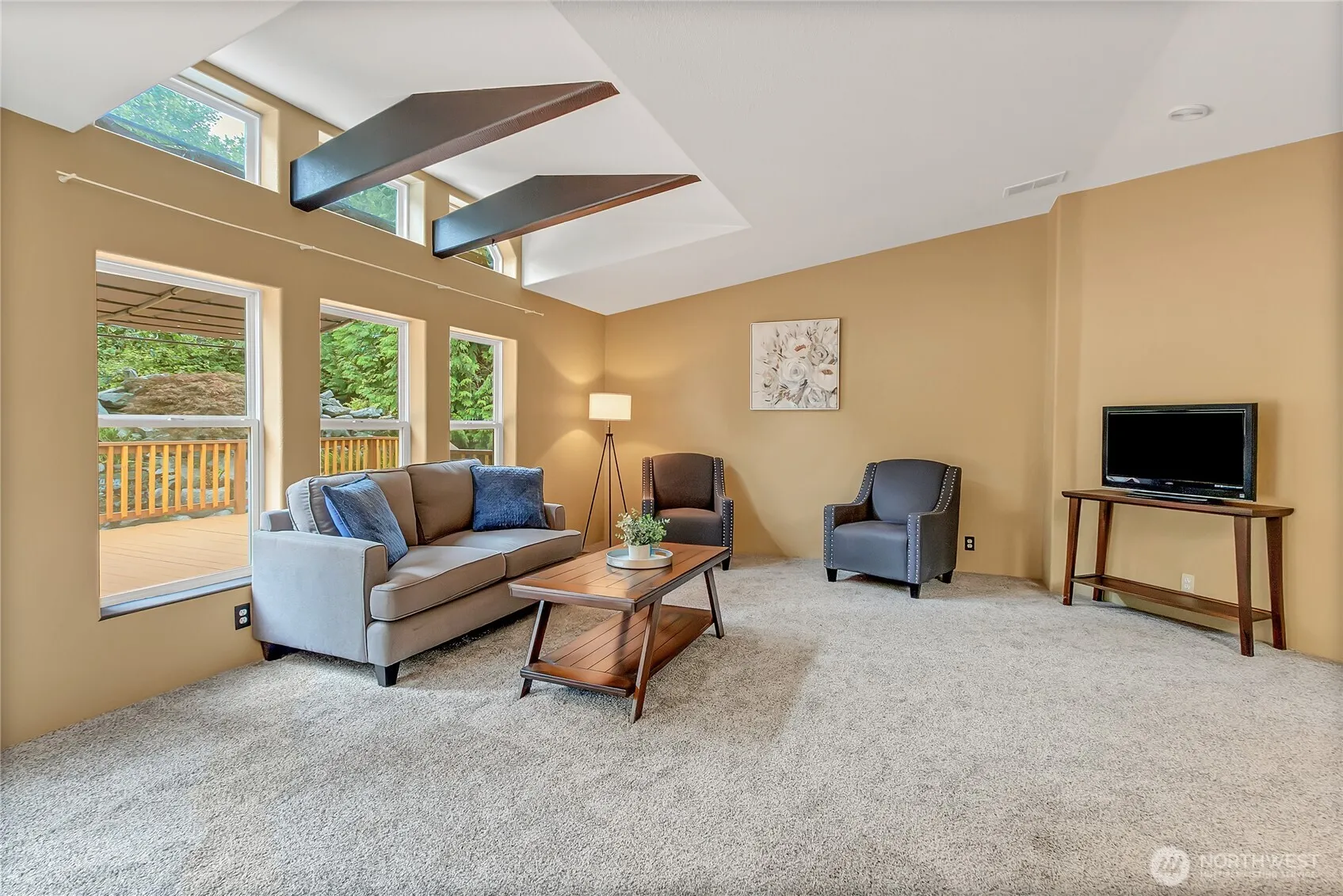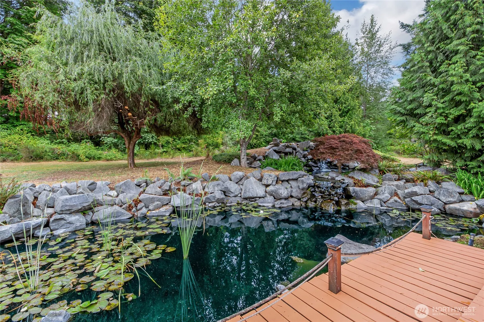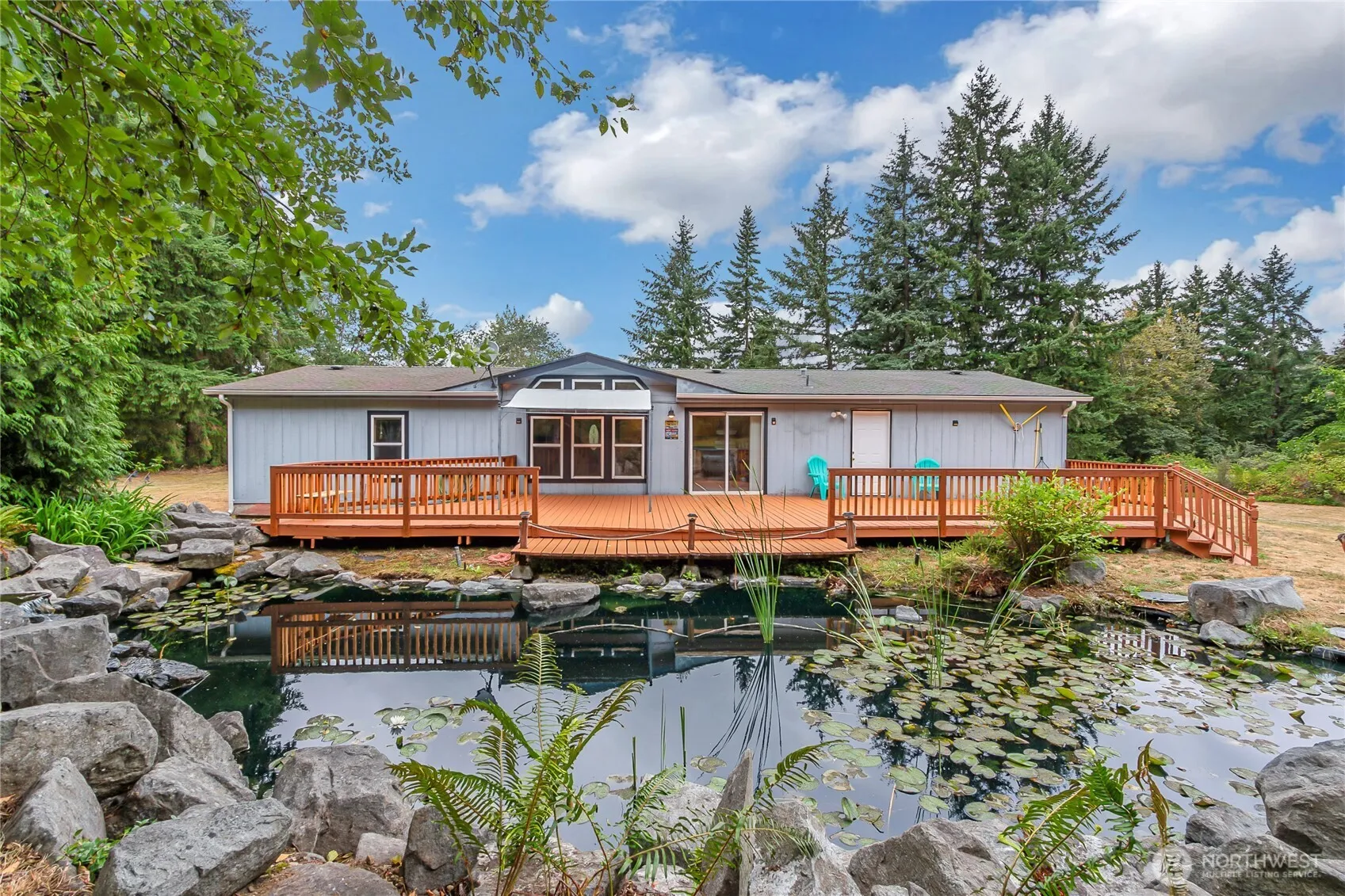 Charming 3BR/2BA home set on 2 acres of fully fenced, landscaped grounds with RV parking. Enjoy serene views of the koi pond and cascading waterfall from the bright, open-concept living area. Recently refreshed with new carpet, flooring, and interior paint, this residence offers modern comfort in a tranquil setting. The private primary wing features a spa-inspired bath with jacuzzi tub, perfect for unwinding. A cozy pellet stove adds winter warmth, while expansive windows invite natural light year-round. Experience the beauty of country living just minutes from shopping, dining, and amenities.