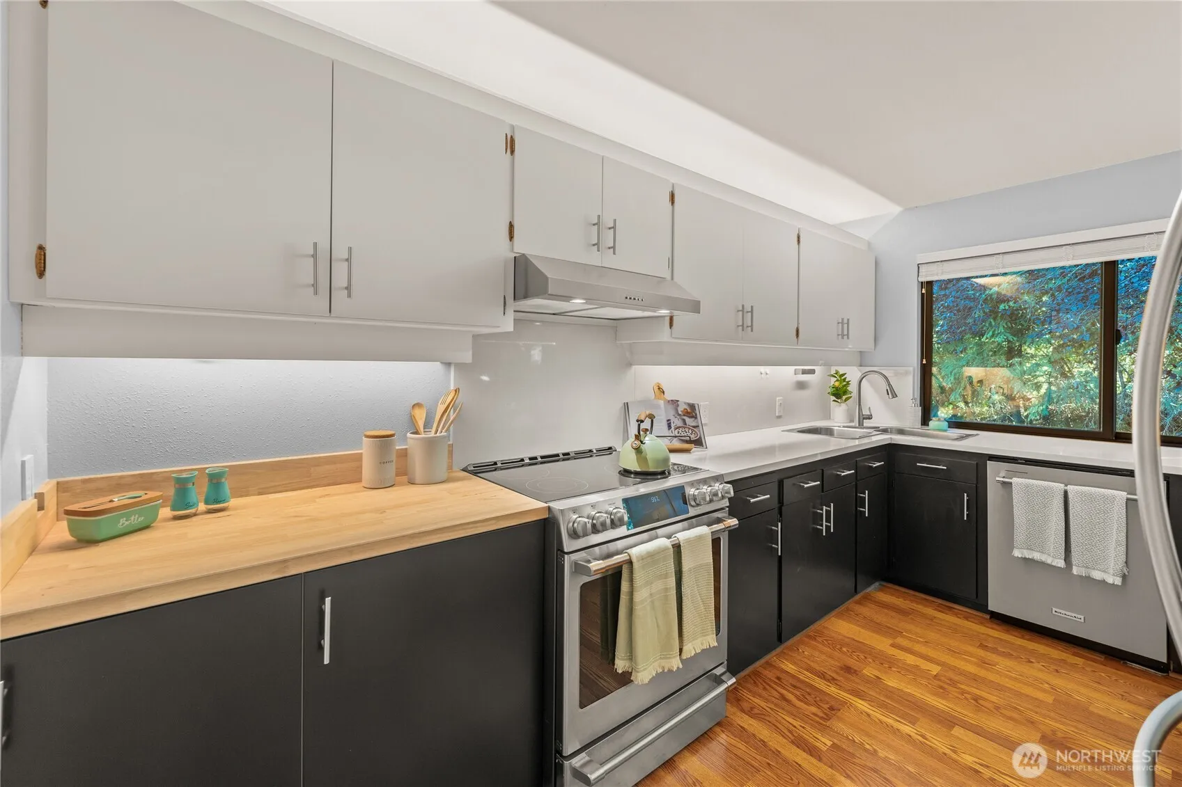 Mid-century magic in coveted Hurstwood neighborhood surrounded by Seahurst Park and the beach! This fully remodeled 3 bed, 2 bath home sits on a peaceful ¼-acre lot backing to a lush greenbelt for ultimate privacy. Inside, enjoy real hardwood floors, fresh paint, newer roof, $65K in new Anderson windows plus custom blinds, high-end appliances, 2 fireplaces, and A/C. The layout flows beautifully with tons of built-ins and storage. Spacious living areas open to a large, private back deck overlooking the fully fenced backyard. Low-maintenance landscaping, a large shed, and whole-house generator add convenience. Oversized 2-car garage plus tons of extra parking. Pre-inspected and truly move-in ready – you’ll fall in love!