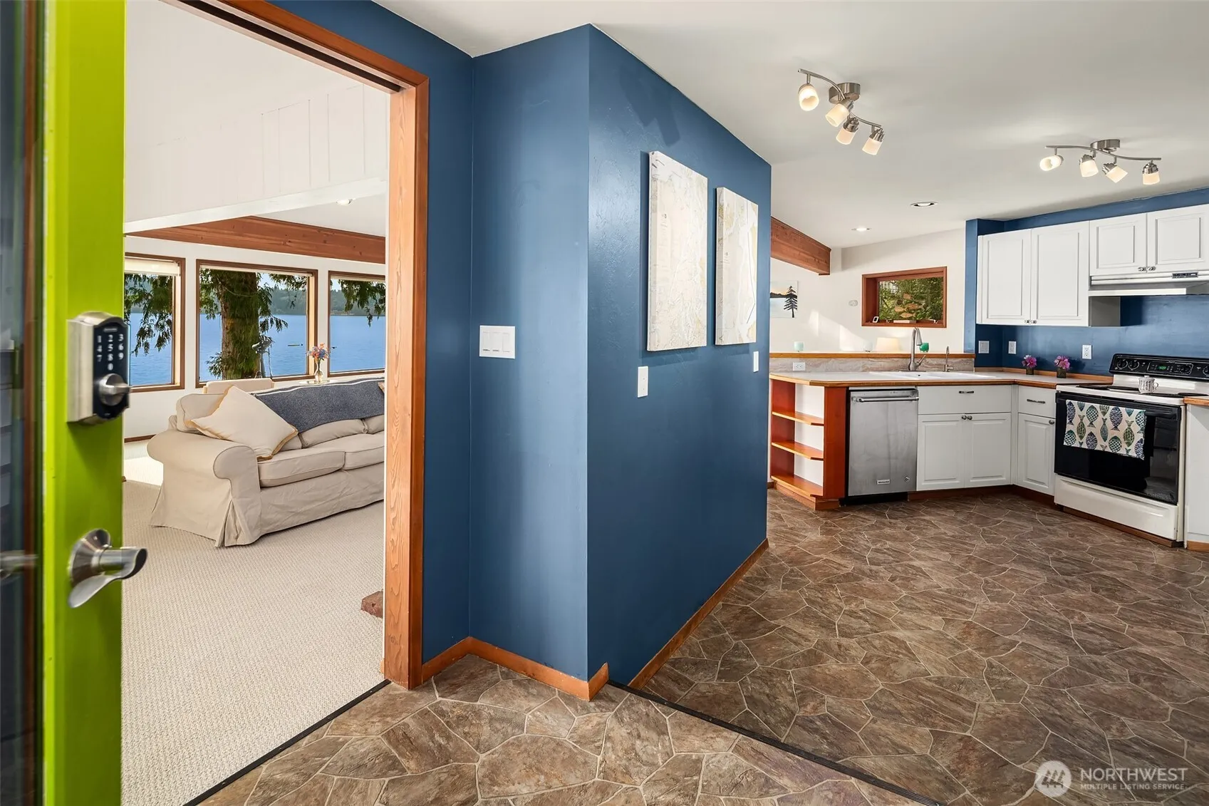 Tucked away on nearly 0.3 acres, this 1935 home captures the essence of classic Northwest charm w thoughtful updates. Inside, an open-concept living space invites gatherings and quiet moments alike, seamlessly extending to a generous deck that frames sweeping sunset views. The upper-level primary suite offers a serene retreat with an en suite bath, while the lower-level bedroom provides ideal separation for guests or work from home flexibility. Rare waterfront amenities include a bulkhead, private dock, tram, and stairs leading directly to the beach. With gentle yard access to coveted low-bank frontage, this is an unmatched setting for morning paddles, fireside evenings, & everyday life inspired by the rhythm of the tide.