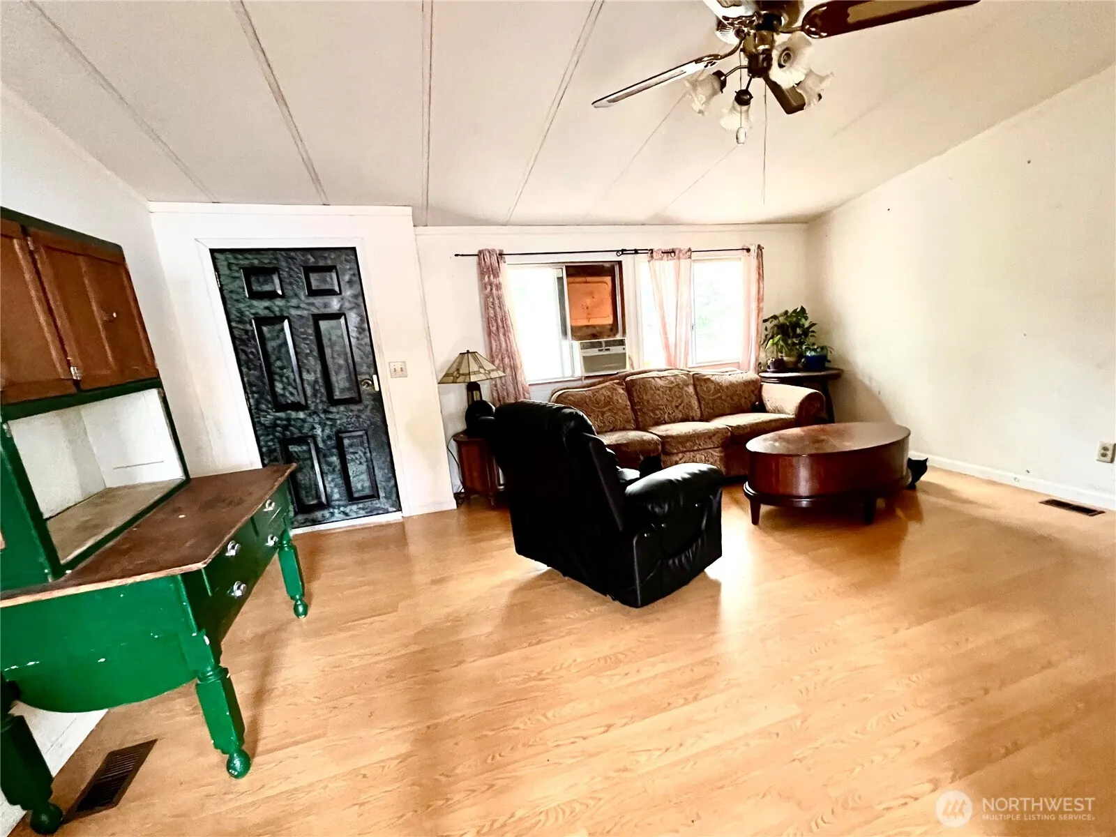 Great location close to downtown Buckley Home features 3 large bedrooms 1.75 bath. Primary bath has a claw foot tub. Home is located in the all ages park of Meadowbrook sitting on an over sized lot with fenced private backyard. Extra parking in independent driveway, Meadowbrook offers Additional Rv parking and has a playground. Bring your vision and tool belt this home needs a face lift.