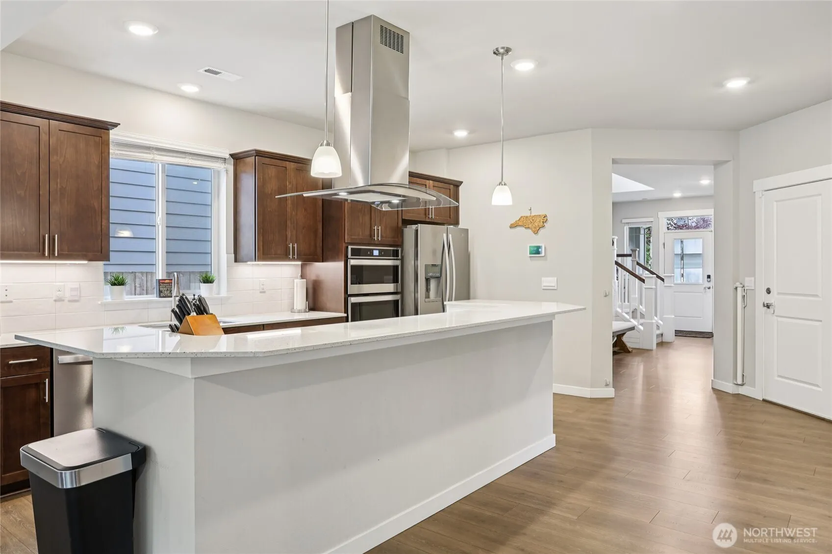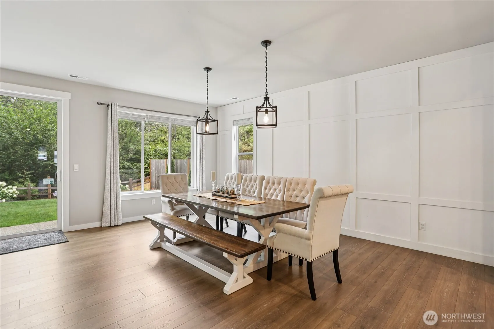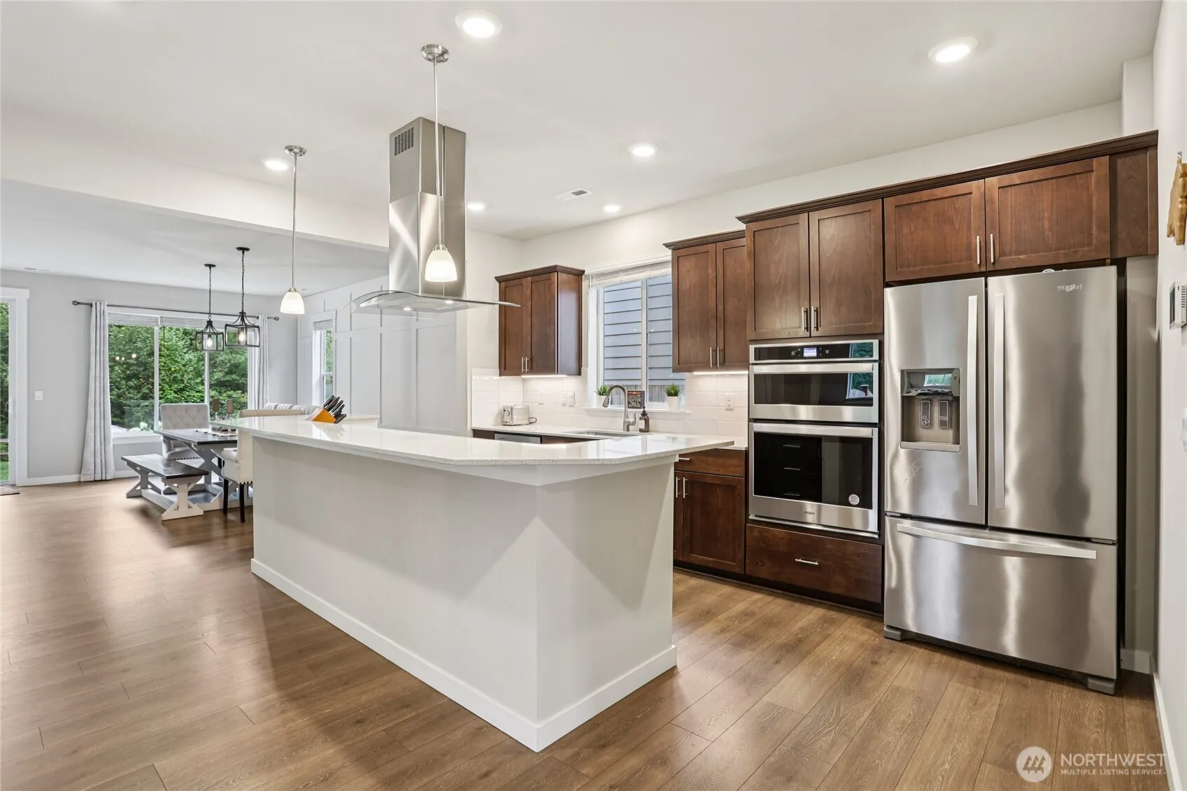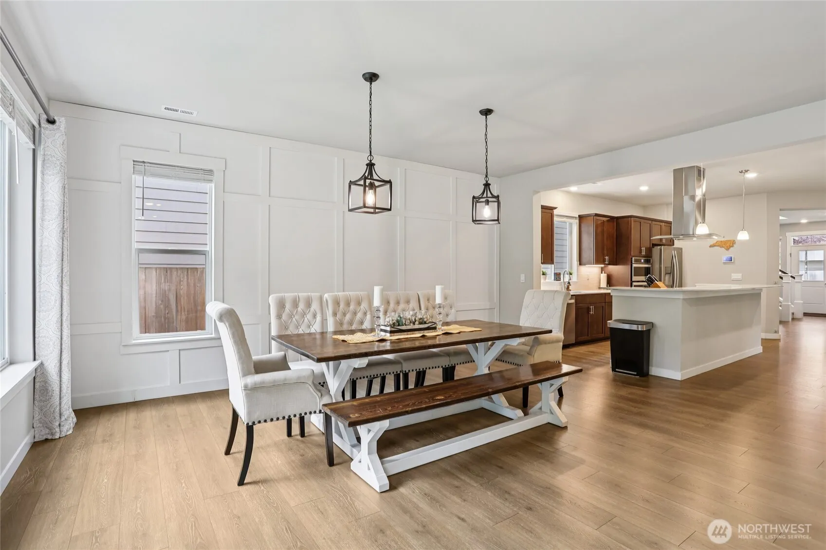 Enter into this bright and airy residence featuring an open floor plan, luxury vinyl plank flooring, and expansive windows that fill the home with natural light. The spacious living room, complete with a cozy gas fireplace, flows seamlessly into the large dining area and gourmet kitchen, perfect for entertaining! The kitchen boasts an oversized quartz island, custom hood, quartz countertops, and stainless steel appliances. A main-floor bedroom and ¾ bath provide flexible space for guests or a home office. Upstairs, retreat to the luxurious primary suite with a soaking tub, dual vanities, and a walk-in closet. A large, versatile bonus room and three additional bedrooms complete the upper level. Ideally located near top-rated schools!