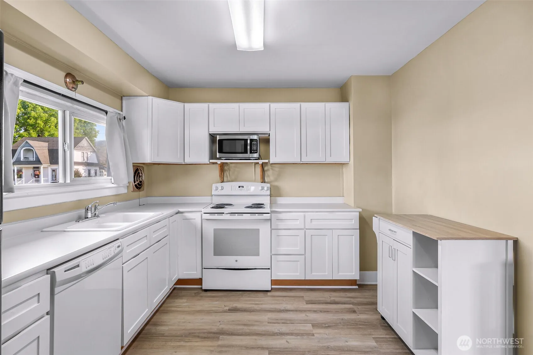 Bright and inviting home featuring brand new vinyl plank floors, updated bathroom, a roomy kitchen and dedicated dining space. The floor plan offers two bedrooms on the main level plus a large upstairs bedroom with an attached bonus room. Outside, enjoy a fenced backyard, freshly painted front patio and back deck, and plenty of parking with a 3-car wide carport and tall garage ideal for RV or boat storage. A built-in dog door leads from the garage to the kennel, which conveys with the property, adding ease for pet owners. Situated in a charming neighborhood of historic homes near schools and the tech school, this location blends charm with convenience. Check out the linked virtual tour!