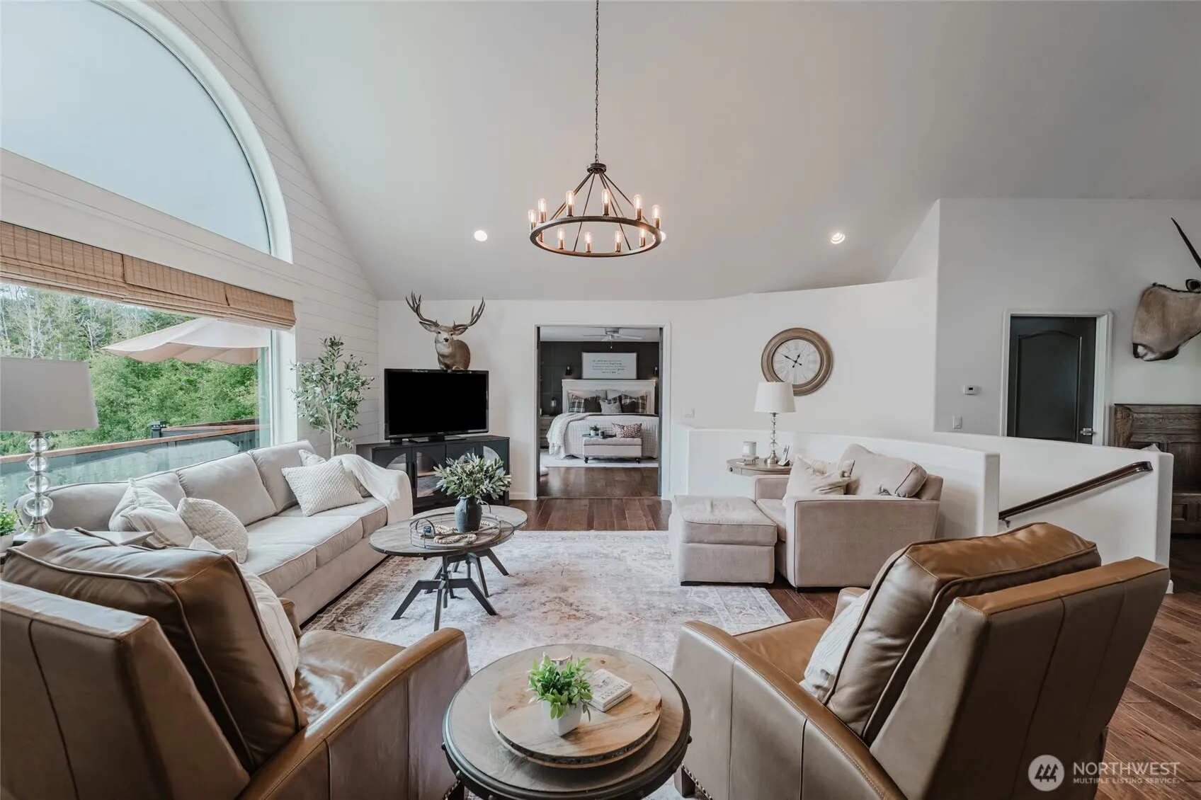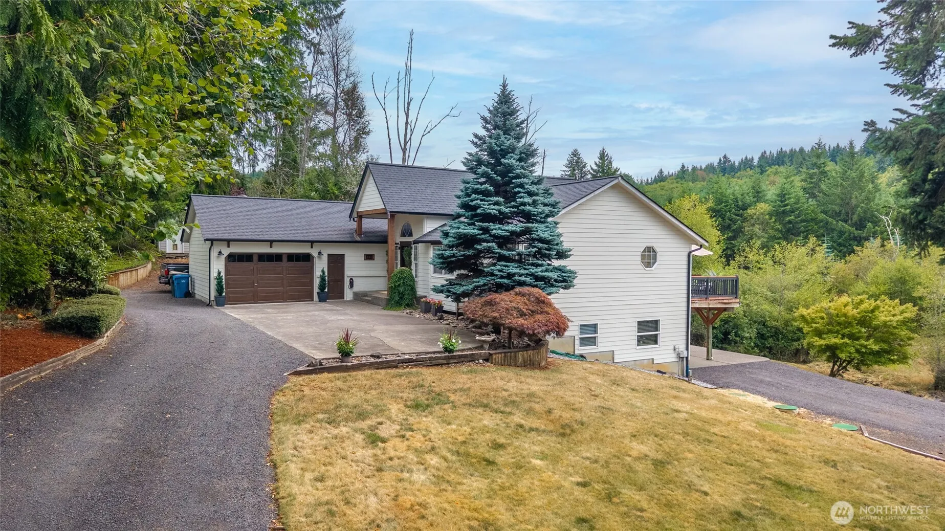 Beautifully renovated, this stunning 3,046 sq ft home offers 2 bedrooms, 2.5 remodeled baths, a bonus room currently used as a gym- or ideal for a 3rd bedroom, & a flexible office or craft space- endless options! The luxurious primary suite features a walk-in closet & spa-like bathroom with dual sinks, soaking tub, & rain shower. A Gourmet kitchen includes quartz counters, under-cabinet lighting, engineered hardwood floors, & a walk-in pantry. Enjoy two living areas, including a lower-level family room with electric fireplace & full bar—perfect for entertaining & cozy movie nights! New roof (2022), wraparound deck with gazebo, 24×48 3 bay shop with RV hookup, all on 5 private, tree-lined acres. This home has it all & is move in ready!