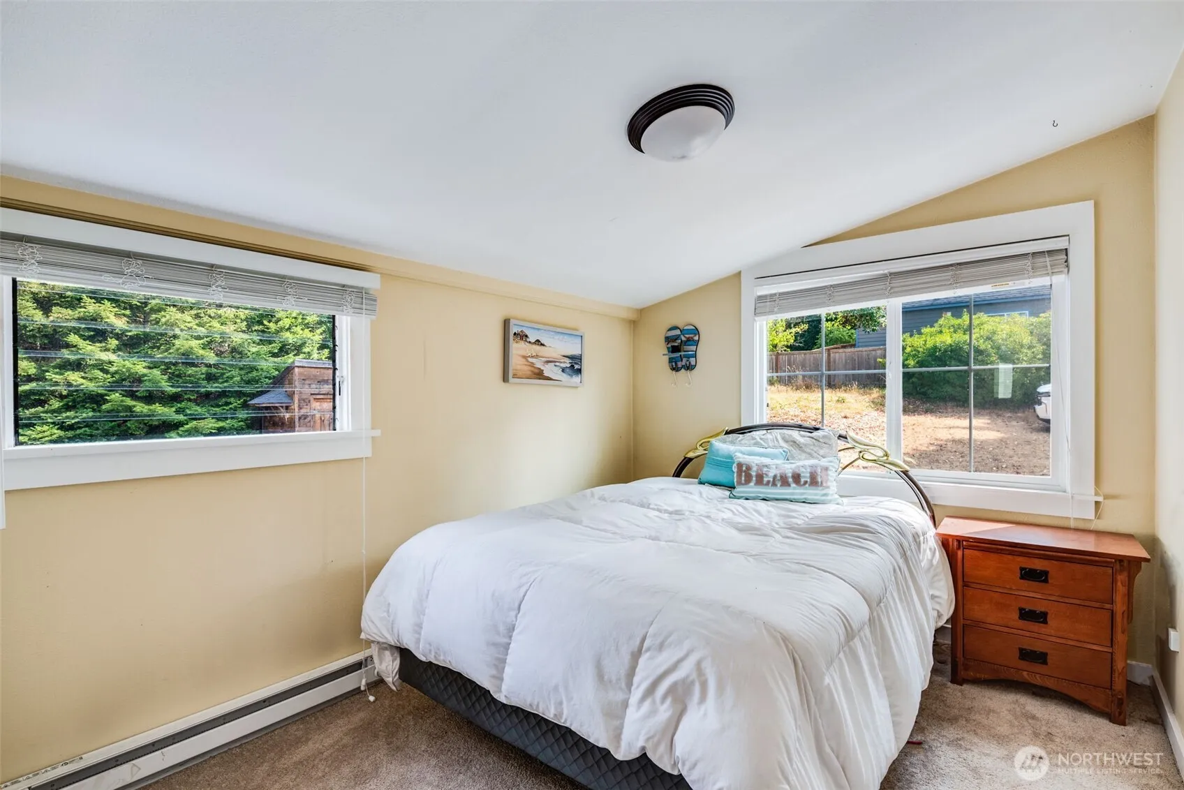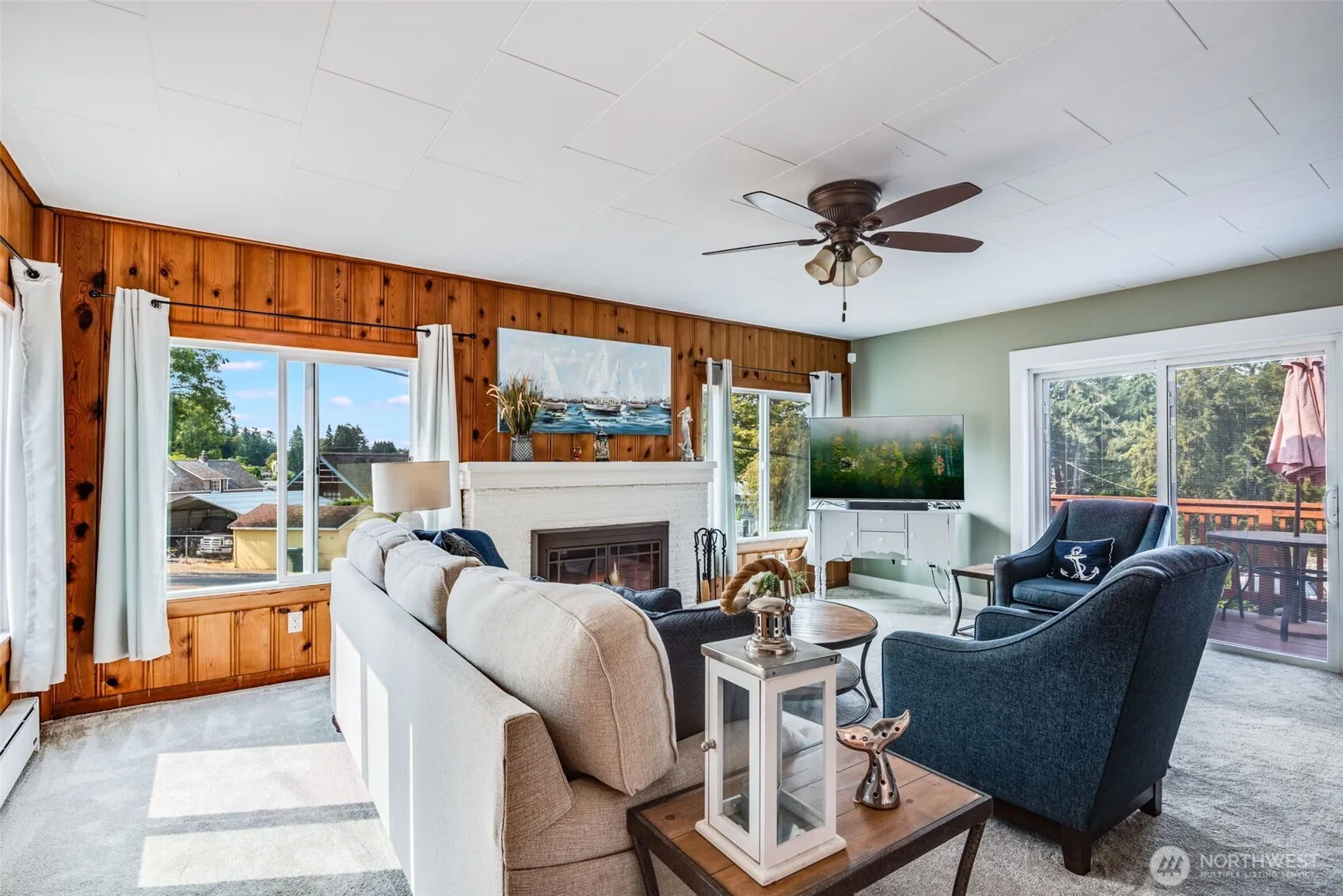 Beautifully updated bungalow in the highly desirable Lake Louise area. This inviting home offers a cozy cabin-style living room with knotty pine accents and a modern kitchen featuring chestnut-toned cabinetry, stainless steel appliances, and a glass tile backsplash. Spacious living area with a warm fireplace, plus stylishly remodeled bathrooms with tiled showers. Recent updates include new windows, exterior paint, new flooring installed last year, and plumbing. The outdoor space is perfect for entertaining with a firepit, deck, and patio. Enjoy gorgeous lake views and convenient beach and boat access just across the street!