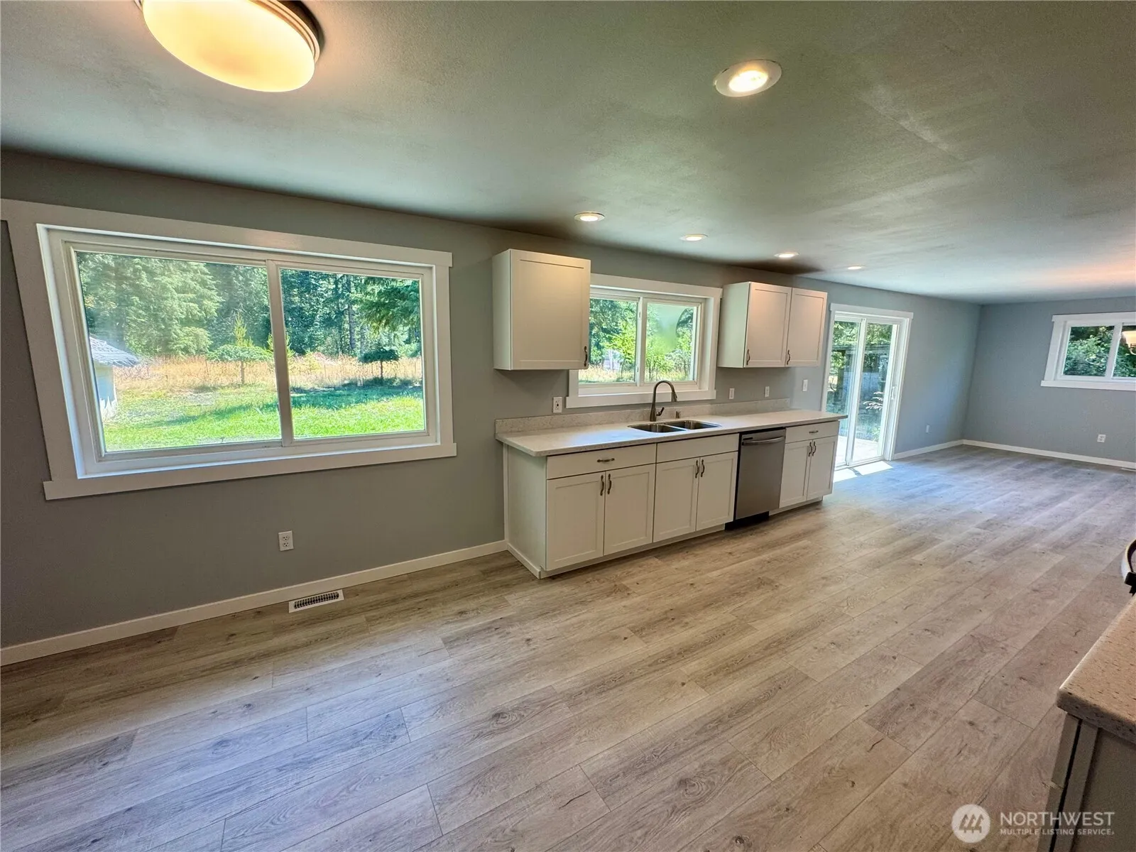 Welcome to this beautifully refreshed, peaceful retreat on 2.33 acres with modern updates! Discover your private paradise on this level, partially wooded giant lot offering natural beauty with the perfect blend of privacy, and peaceful rural abundant garden space and room to roam. This remodeled home features brand new engineered hardwood floors, plush carpet, fresh paint, new cabinets/counters, lighting & fixtures, a new roof, move-in ready and full of charm. Massive shop provides a ton of space for projects, equipment, storage. Separate utility setup (power, water, and septic) on the back of the lot is ideal for an RV. Experience quiet country living just minutes from town-serenity, space, & style all in one! Just minutes from Lost Lake.